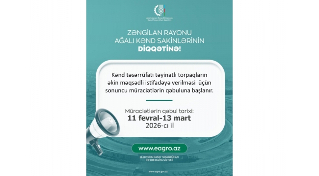 Ağalı kəndində torpaqların əkin məqsədli istifadəyə verilməsi üçün sonuncu müraciətlərin qəbuluna başlanır