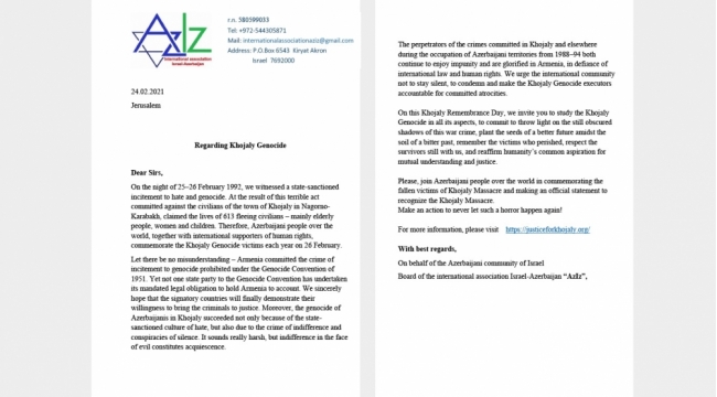 "Azİz" Assosiasiyası beynəlxalq ictimaiyyəti Xocalı soyqırımını tanımağa çağırıb