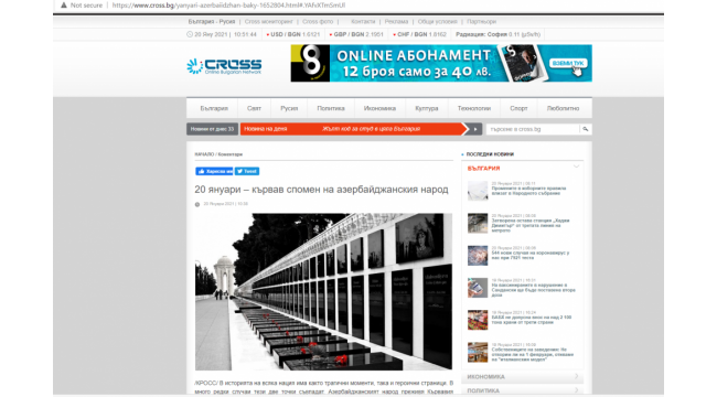 Bolqarıstan mətbuatı 20 yanvar hadisələri barədə yazıb