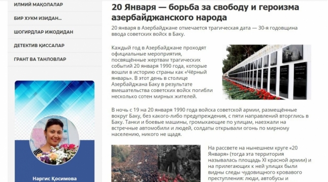 Özbəkistanın portalında 20 Yanvar faciəsi ilə bağlı məqalə yerləşdirilib