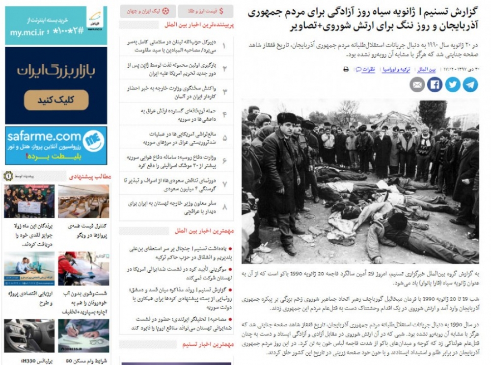 İranın “Tasnim news” və “Shahronline.ir” informasiya portallarında 20 Yanvar faciəsindən bəhs edən məqalələr dərc olunub.