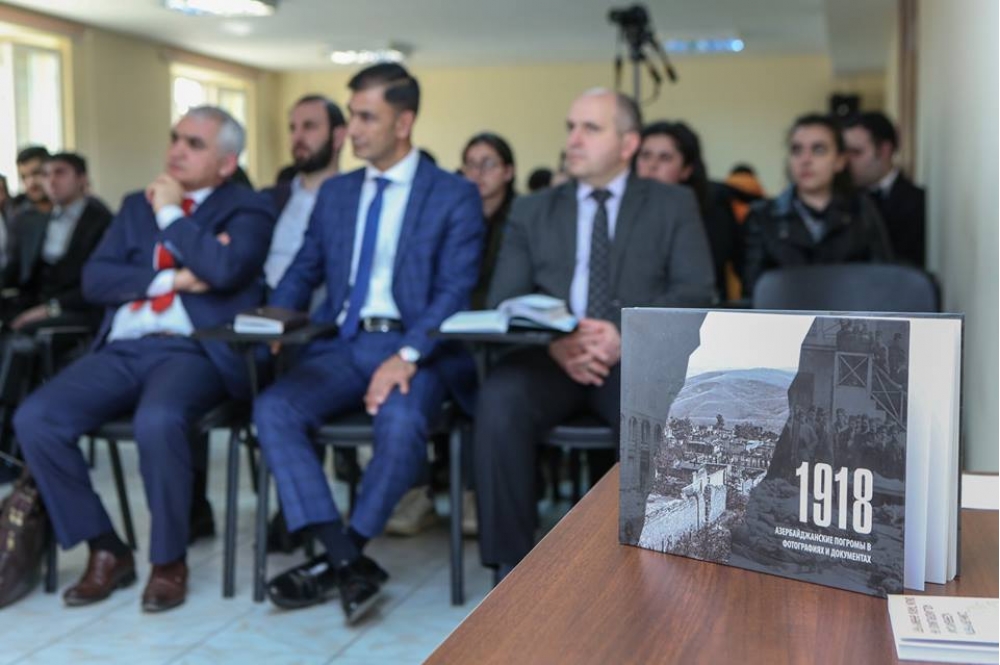 Tədbiri giriş nitqi ilə açan İnstitutun rektoru Ceyhun Məmmədov bildirib ki, ermənilərin azərbaycanlılara qarşı bütün dövrlərdə törətdikləri soyqırımına ümummilli lider Heydər Əliyevin 1998-ci il 26 mart tarixli Fərmanı ilə siyasi qiymət verilib, martın 31-i Azərbaycanlıların Soyqırımı Günü elan edilib. Rektor qeyd edib ki, 18 yanvar 2018-ci il tarixdə Prezident İlham Əliyev 1918-ci il 31 Mart – Azərbaycanlıların soyqırımının 100 illiyi haqqında Sərəncam imzalayıb.