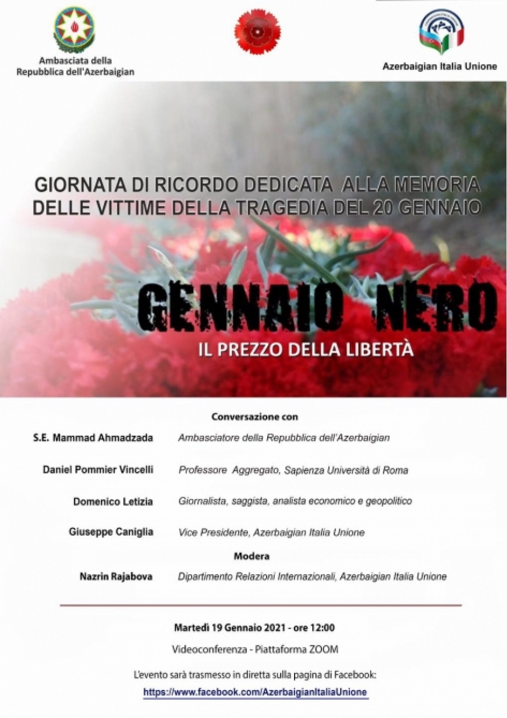 Azərbaycanın İtaliyadakı səfirliyinin və Azərbaycan İtaliya Birliyinin birgə təşkilatçılığı ilə Romada 20 Yanvar faciəsinin 31-ci ildönümü ilə əlaqədar olaraq anım tədbiri keçirilib.