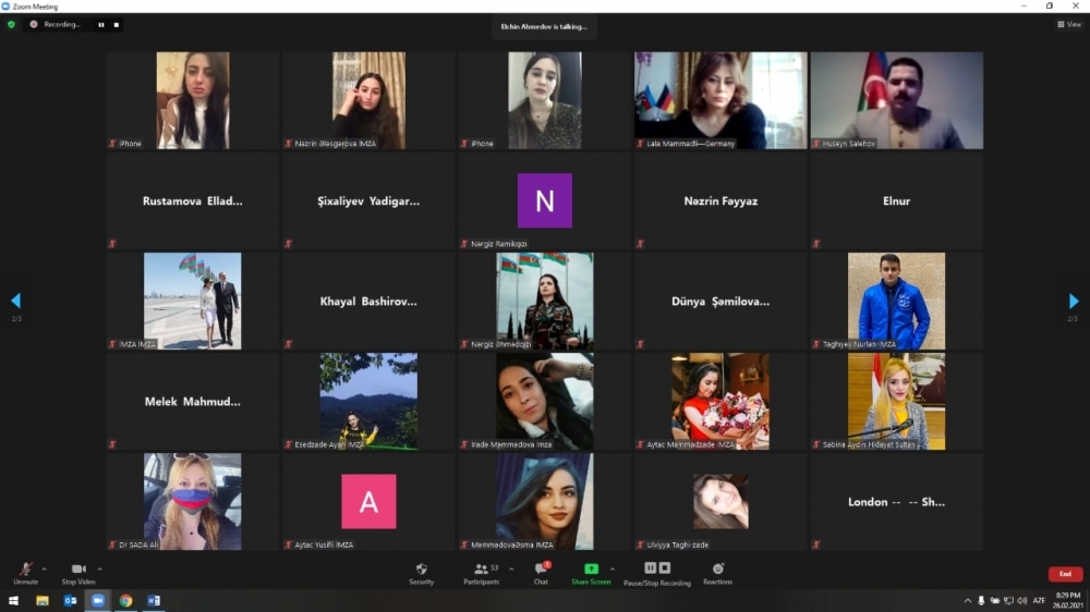 “İki shail” xəbər verir ki, birliyin Beynəlxalq və İctimaiyyətlə Əlaqələr departamentinin direktoru Elnar Məmmədlinin verdiyi məlumata görə bu, İMZA-nın Xocalı soyqırımına həsr olunmuş ilk beynəlxalq tədbiri idi. Onlayn formatda keçirilən konfransa böyük maraq var idi. Dünyanın ondan artıq ölkəsindən yüzdən çox iştirakçının qatıldığı tədbir dövlət himnimizin ifası ilə başladı. Sonra Xocalı qətliamı zamanı, həmçinin Azərbaycanın müstəqilliyi, suverenliyi və ərazi bütövlüyü uğrunda həlak olmuş əziz şəhidlərimizin xatirəsi bir dəqiqəlik sükutla anıldı. Faciədən bəhs edən video-çarx nümayiş etdirildi. İMZA-nın Yerli və Beynəlxalq Layihələr departamentinin direktoru, layihənin müəllifi Emil Bayramov erməni faşizminin növbəti qurbanı olmuş Xocalı və onun günahsız dinc sakinlərinin faciəsi barəsində məlumat verdi. Dedi ki, bu soyqırımı cinayətini törədən Ermənistan faktiki olaraq dövlət səviyyəsində terror siyasəti yürüdən ölkə olduğunu sübut edib. Sonra beynəlxalq konfransın moderatoru Elnar Məmmədli iştirakçılara İctimai Birliyin bu layihəsinin məqsədi barəsində məlumat verdi. Bildirdi ki, onlayn konfrans 2008-ci ildə Heydər Əliyev Fondunun vitse-prezidenti Leyla Əliyevanın başlatdığı və bu illər ərzində uğurla reallaşdırılan “Xocalıya ədalət” beynəlxalq maarifləndirmə kampaniyasına dəstək məqsədi ilə keçirilir.