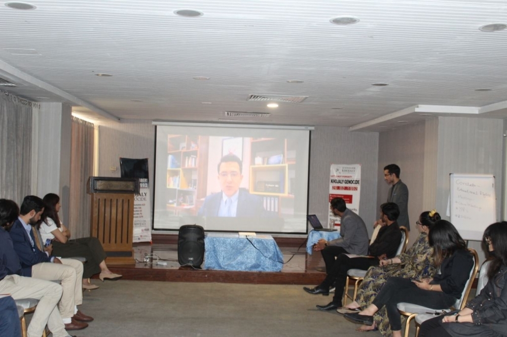Tədbirin həmtəşkilatçısı qismində çıxış edən Pakistan - Gənclərin Müdafiəsi Şəbəkəsinin sədri Fsahat ul Hassan Xocalı soyqırımının Pakistan və digər İslam Əməkdaşlığı Təşkilatı (İƏT) üzv ölkələrində tanıdılması ilə bağlı görülən işlərdən və gənclərin bu sahədə ata biləcəyi addımlardan danışıb. O, Xocalı faciəsinin dəhşətləri haqda akademik tədqiqatların aparılmasının vacibliyini və bu şəkildə faciənin dünya elmi ədəbiyyatında öz yerini lazımi şəkildə almasının əhəmiyyətli olduğunu qeyd edib.