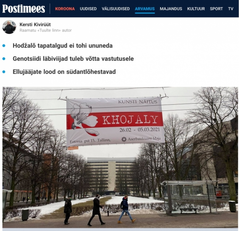 Estoniyanın “Postimees” xəbər portalında bu ölkənin yazıçısı Kersti Kivirüütün Xocalı soyqırımının 29-cu ildönümünə həsr edilmiş məqaləsi yayımlanıb.