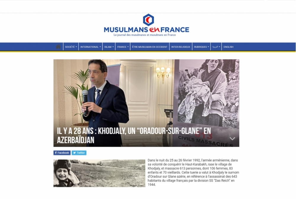 Fransanın “musulmansenfrance” portalında “28 ildir ki, Xocalı Azərbaycanın Oradur-sur-Qlanıdır” adlı Xocalı soyqırımına dair yazı dərc edilib.