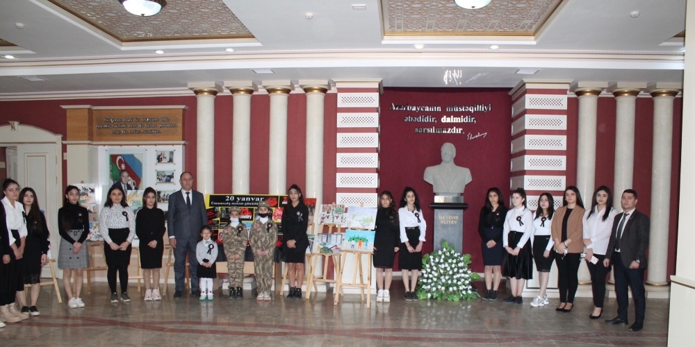 Tədbir iştirakçıları əvvəlcə Mərkəzin ekspozisiya zalında yeniyetmə və gənclərin Qanlı Yanvar hadisələri ilə bağlı rəsm sərgisi ilə tanış olublar.