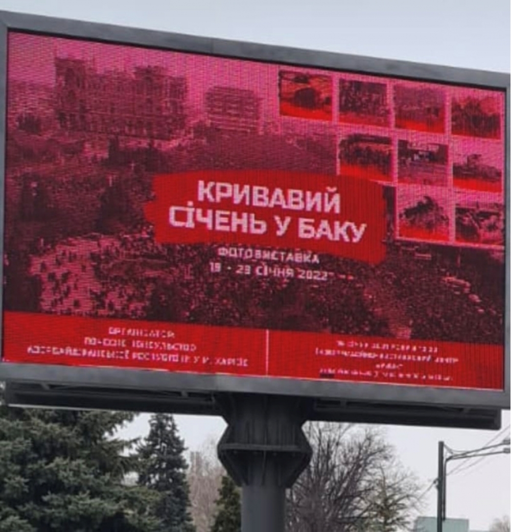 Azərbaycan xalqının milli matəm günü – 20 Yanvar ilə əlaqədar olaraq Azərbaycan Respublikasının Xarkovdakı Fəxri Konsulluğu Xarkov şəhərinin Puşkin və Qirşman küçələrinin, eləcə də Puşkin və Yaroslav Mudrı küçələrinin kəsişməsində iri reklam lövhələri – biqbordlar yerləşdirib. Əsas məqsəd –Azərbaycan xalqının milli azadlıq mübarizəsi salnaməsində “Qanlı Yanvar” günü kimi qalmış – 1990-cı ilin 20 yanvarında sovet rejiminin Bakıda dinc əhaliyə qarşı törətdiyi cinayətləri şəhər sakinlərinə bir daha xatırlatmaq və 19-23 yanvar 2022-ci il tarixlırində Fəxri Konsulluq binsında təşkil olunacaq “Bakıda Qanlı Yanvar” adlı fotosərgi haqqında məlumat verməkdir.