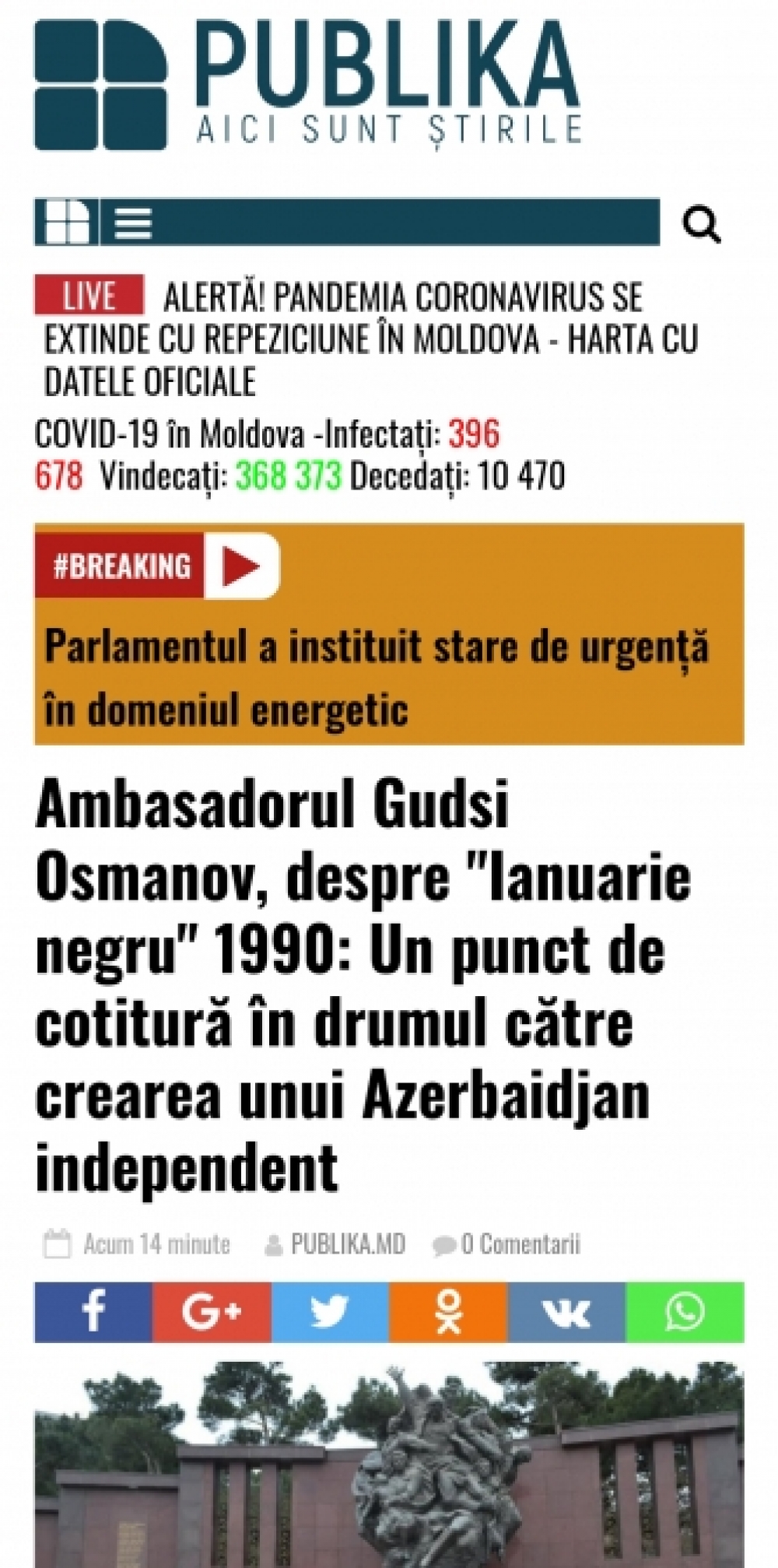 “İki sahil” xəbər verir ki, Moldovanın “noi.md”, “publika.md”, “primelestiri.md” və digər xəbər portallarında dərc edilən məqalələrdə 1990-cı ilin 20 Yanvar hadisələrinin müstəqil Azərbaycanın yaradılması yolunda dönüş nöqtəsi olduğu vurğulanır.