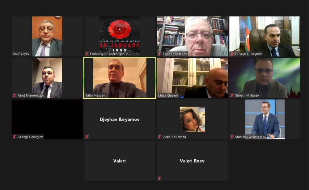 20 yanvar 2022-ci il tarixində Azərbaycan Respublikasının Bolqarıstan Respublikasındakı səfirliyinin təşkilatçılığı ilə 20 Yanvar faciəsinin 32-ci ildönümünə həsr olunmuş video konfrans keçirilmişdir. Konfransda Azərbaycan Respublikasının Bolqarıstandakı səfiriHüseyn Hüseynov, Milli Məclisin və Bolqarıstanın Xalq Məclisinin parlamentlərarası dostluq qruplarının üzvləri – Rauf Əliyev (sədr), Sabir Hacıyev, Musa Qasımlı, StanislavAnastasov, Ceyhanİbryamov, həmçinin Bolqarıstan Xalq Məclisinin Hüquq və Azadlıqlar Hərəkatı və Demokratik Bolqarıstan partiyalarının üzvləri, Bolqarıstanın elmi-tədqiqat dairələrinin üzvləri, yerli mütəxəssislər və media nümayəndələri iştirak və çıxış etmişlər.