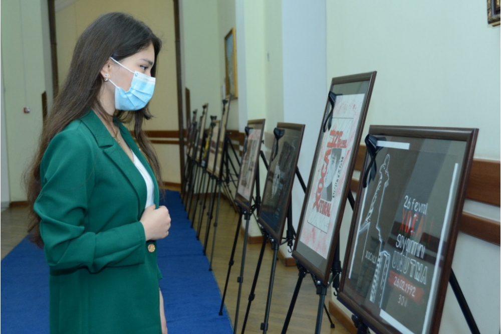 Tədbir çərçivəsində UNEC Dizayn Məktəbinin tələbələrinin Xocalıya həsr olunan rəsm əsərləri də nümayiş olunub.
