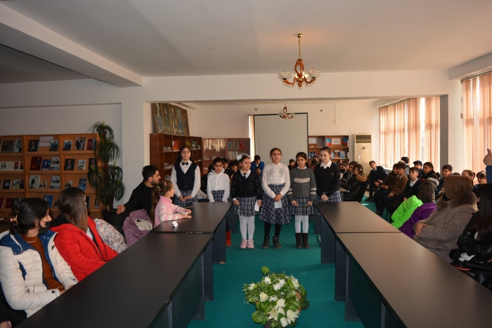 Çıxışlardan sonra şagirdlərin ifasında Xocalı soyqırımına həsr olunmuş şerlər səsləndi, soyqırımından bəhs edən sərgiyə baxıldı.