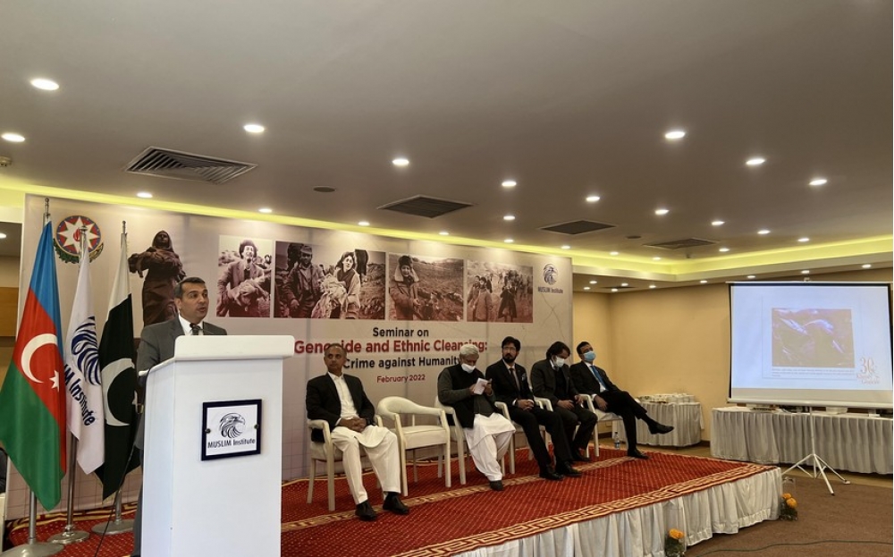 Azərbaycanın Pakistan İslam Respublikasındakı Səfirliyi bu ölkənin aparıcı beyin mərkəzlərindən biri hesab olunan Müslim İnstitutu ilə birgə Xocalı Soyqırımının 30-cu ildönümünə həsr olunmuş "Soyqırım və etnik təmizləmə: Bəşəriyyətə qarşı cinayət" adlı seminar və foto-sərgi təşkil edib.