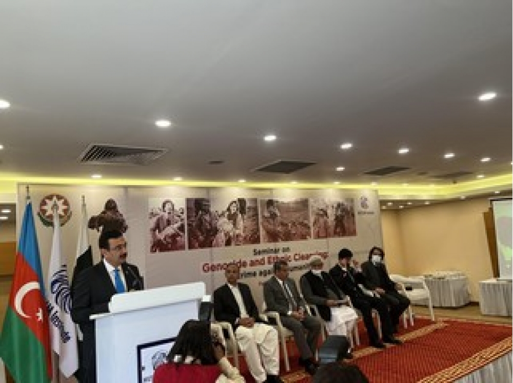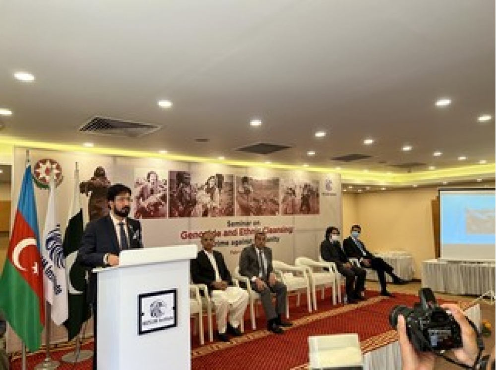 Daha sonra Azərbaycanın Pakistandakı səfiri Xəzər Fərhadov çıxış edərək Azərbaycana qarşı təcavüzü zamanı Ermənistan silahlı qüvvələri tərəfindən Xocalıda törədilmiş soyqırımın 30-cu ildönümünün anıldığını qeyd edib. Xocalı soyqırımı haqqında ətraflı məlumatı iştirakçıların diqqətinə çatdıran səfir X.Fərhadov, bu soyqırımın təkcə Azərbaycana qarşı yox, insanlığa və bəşəriyyətə qarşı törədilmiş ən ağır cinayətlərdən biri olduğunu xüsusi vurğulayıb.