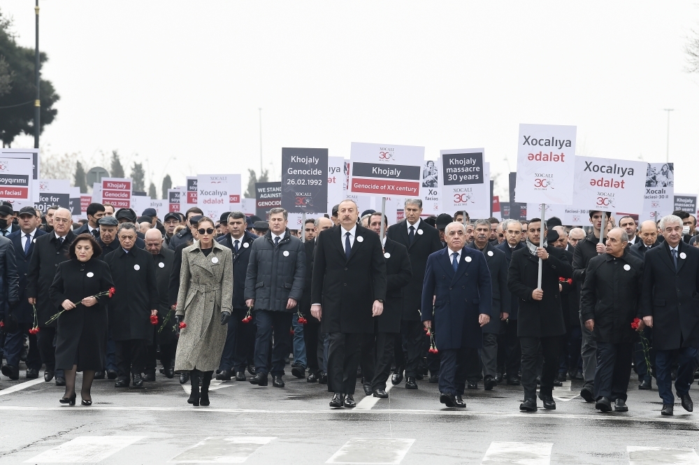 XX əsrdə bəşər tarixinə Xocalı soyqırımı kimi daxil olan qanlı faciənin 30-cu ildönümü ilə əlaqədar Bakıda ümumxalq yürüşü keçirilib.