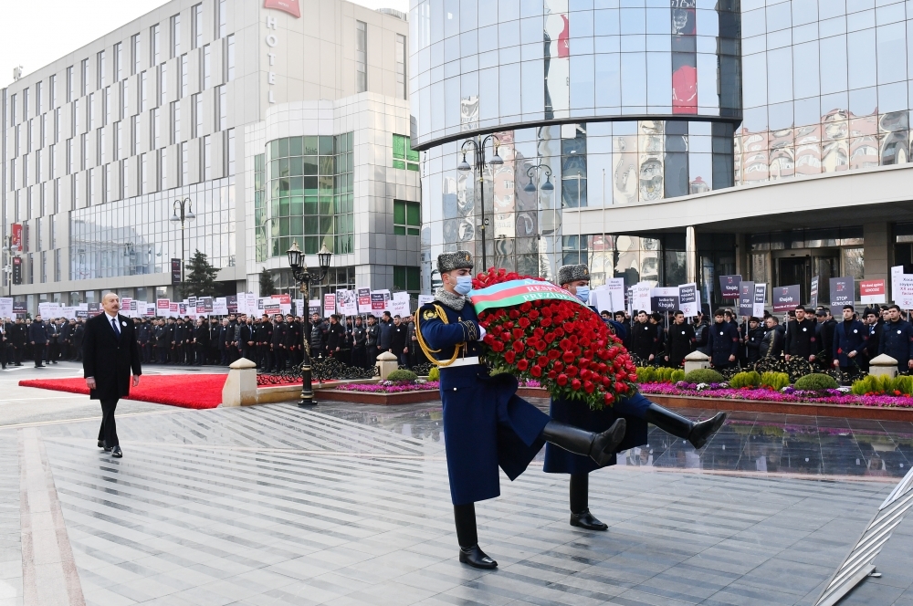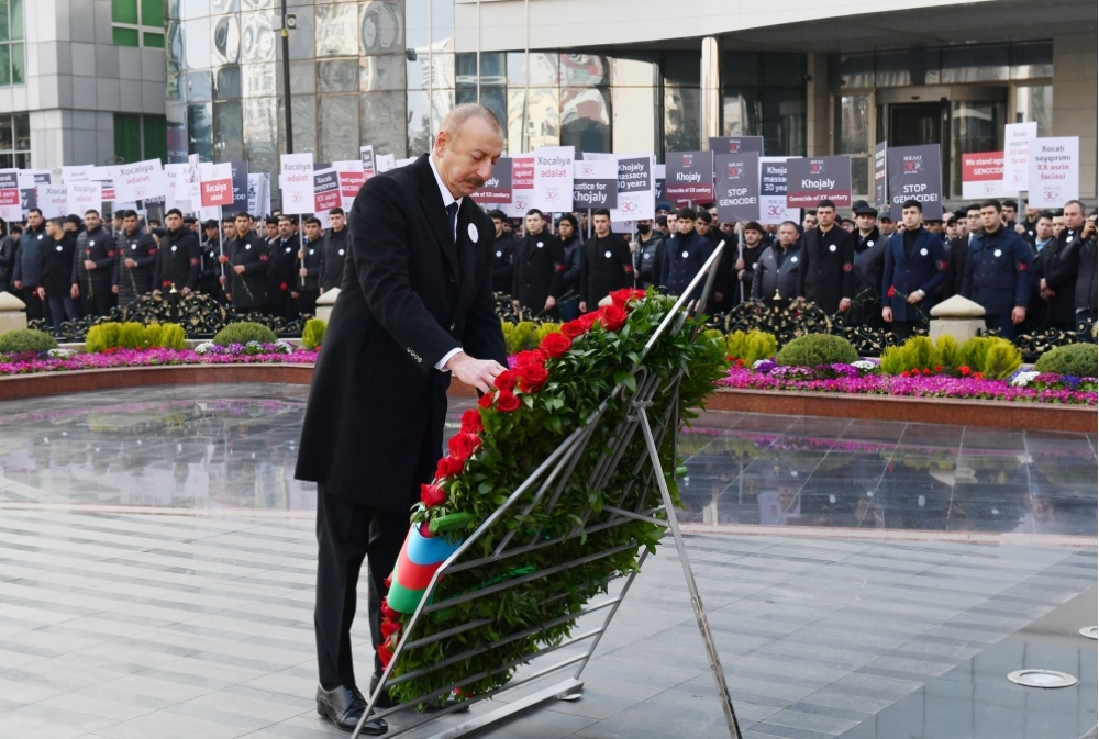 Prezident İlham Əliyev Xocalı soyqırımı abidəsinin önünə əklil qoydu, faciə qurbanlarının xatirəsini ehtiramla yad etdi.