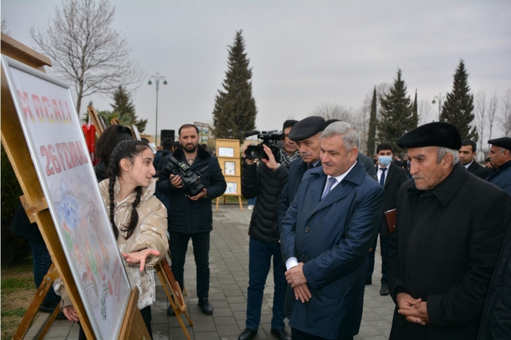 “İki sahil” xəbər verir ki, tədbirdə rayon rəhbərliyi, hüquq – mühafizə orqanlarının rəhbərləri, müharibə veteranları və qaziləri, şəhid ailələri ,çoxsaylı ictimaiyyət nümayəndələri, Xocalı faciəsini yaşamış Xocalı sakinləri iştirak ediblər.