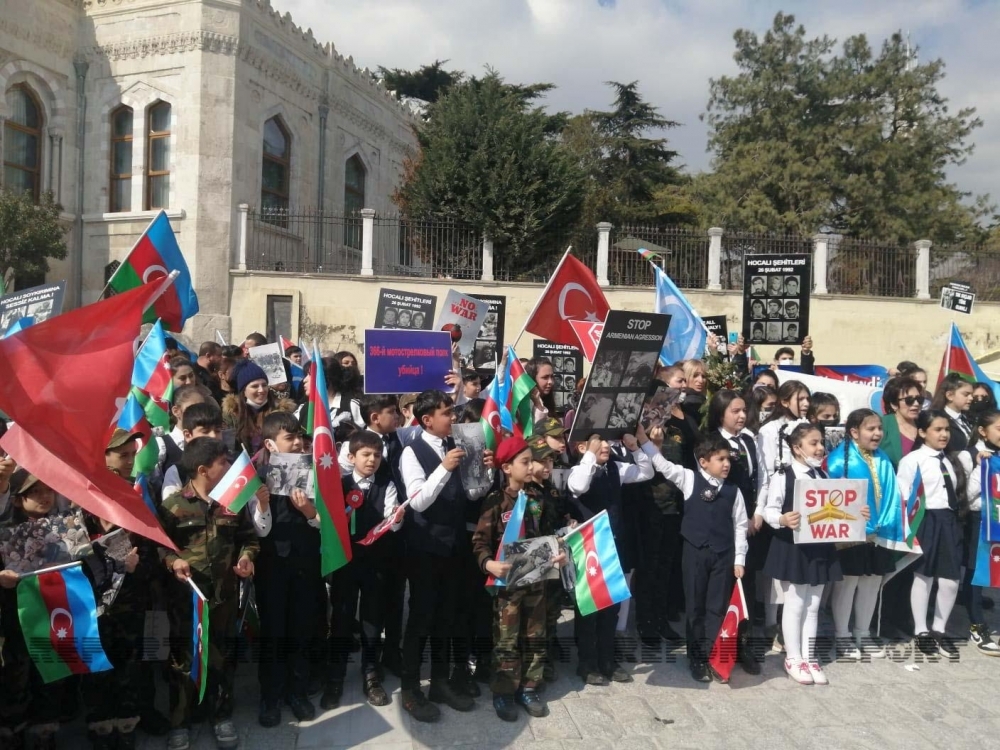 İstanbulun tarixi "Beyazit meydanı"nda Xocalı soyqırımının 30-cu ildönümü ilə əlaqədar aksiya keçirilib.