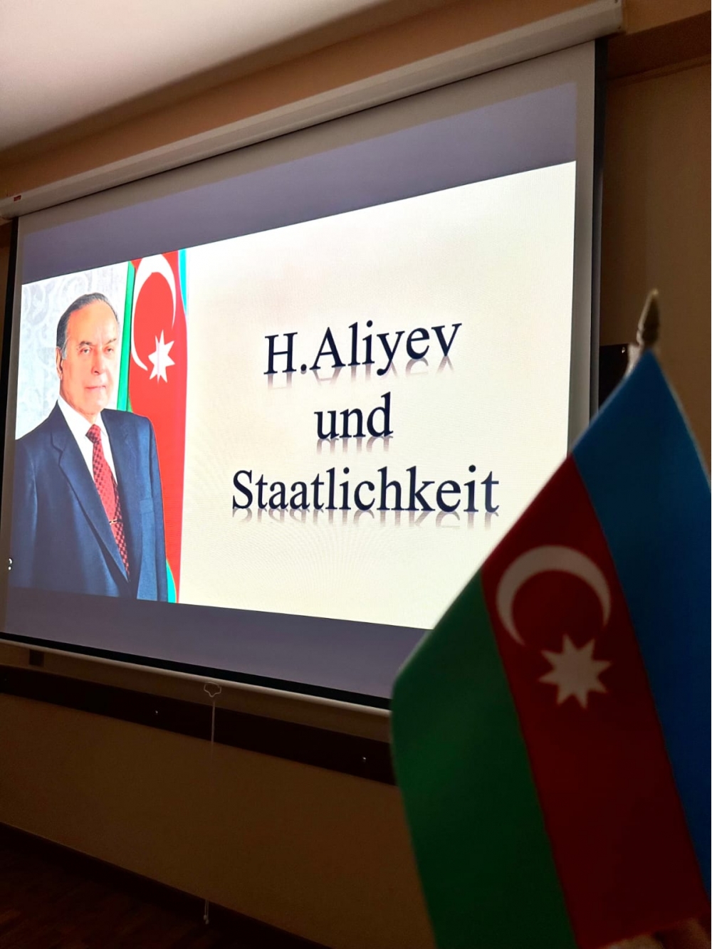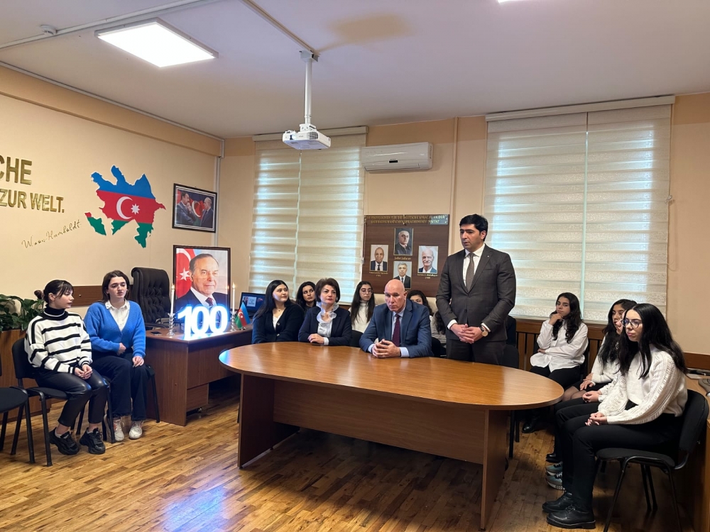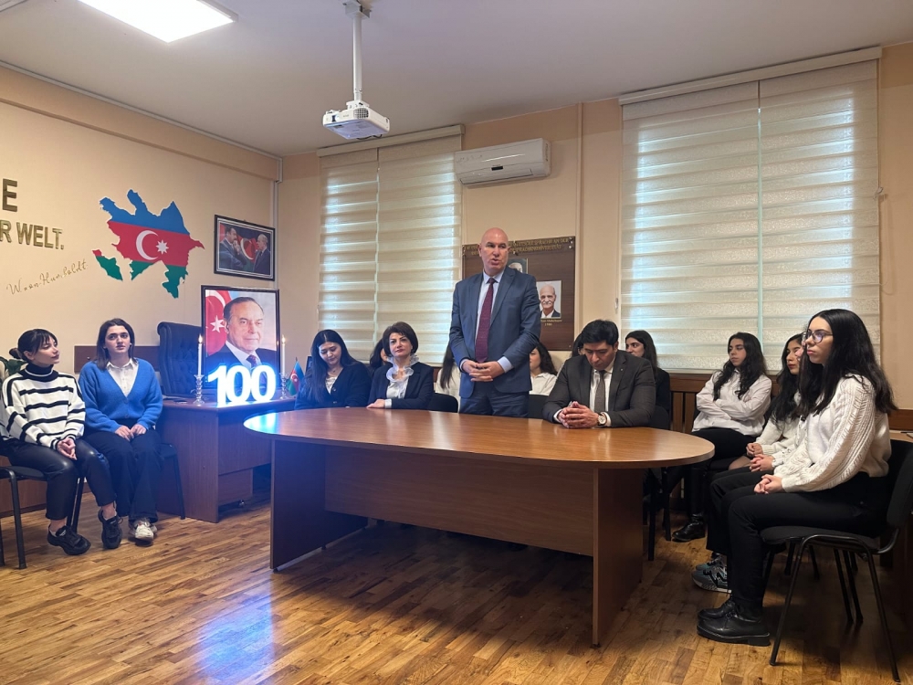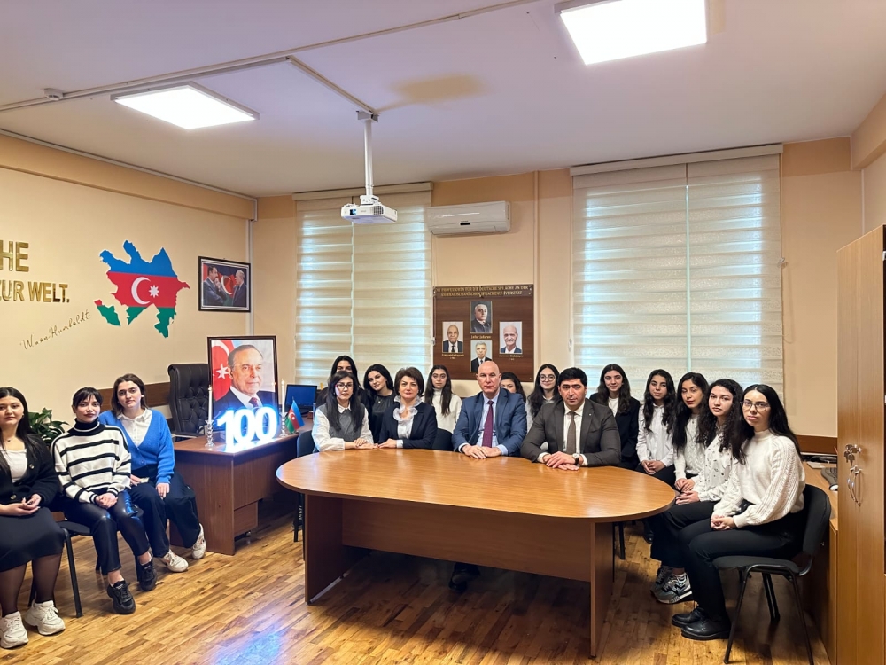 Sonra tələbələrin ifasında Ümummilli Liderin dövlətçilik haqqında müdrik kəlamları həm Azərbaycan, həm də alman dilində səsləndirildi, həyat və fəaliyyətini əks etdirən videoçarx nümayiş olundu.