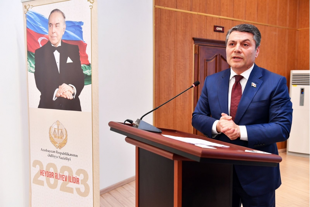Çıxış zamanı müstəqillik illərində bu sahənin sürətlə inkişaf etdiyini vurğulayan deputat Ulu Öndər Heydər Əliyevin 1993-cü ildə hakimiyyətə qayıdışından sonra məhz onun rəhbərliyi ilə ədliyyə sisteminin inkişafını təmin edən ardıcıl və məqsədyönlü islahatlar həyata keçirildiyini, nazirliyin səlahiyyətlərinin genişləndirildiyini, cəmiyyətdə rolunun artdığını diqqətə çatdırdı: “Ulu Öndərin ədliyyə sahəsinə göstərdiyi böyük qayğının təzahürü olaraq 11 noyabr 2000-ci il tarixdə imzaladığı Sərəncamla Ədliyyə Nazirliyinin ilk Əsasnaməsinin təsdiq edildiyi gün 22 noyabr Azərbaycan Respublikası ədliyyə işçilərinin peşə bayramı günü kimi təsis edilmişdir”.