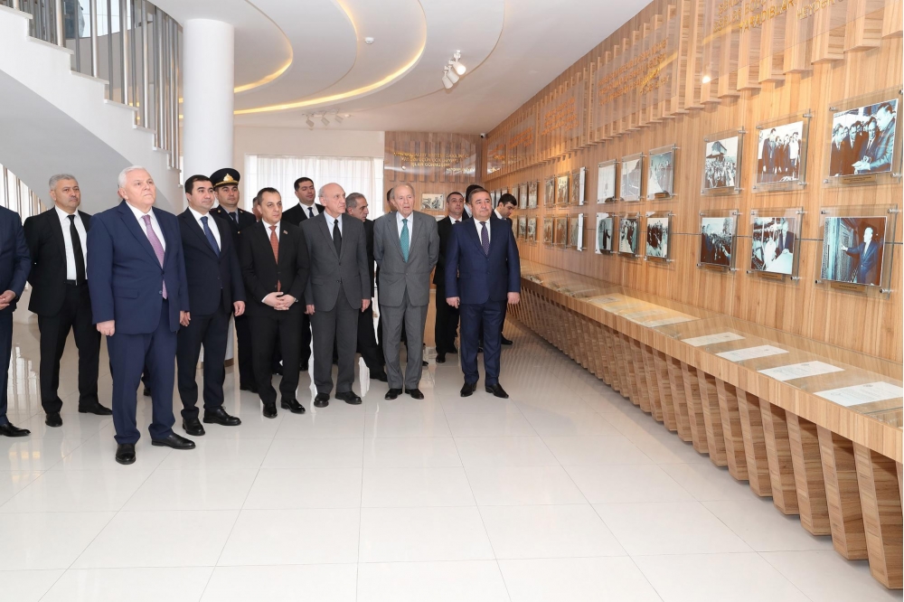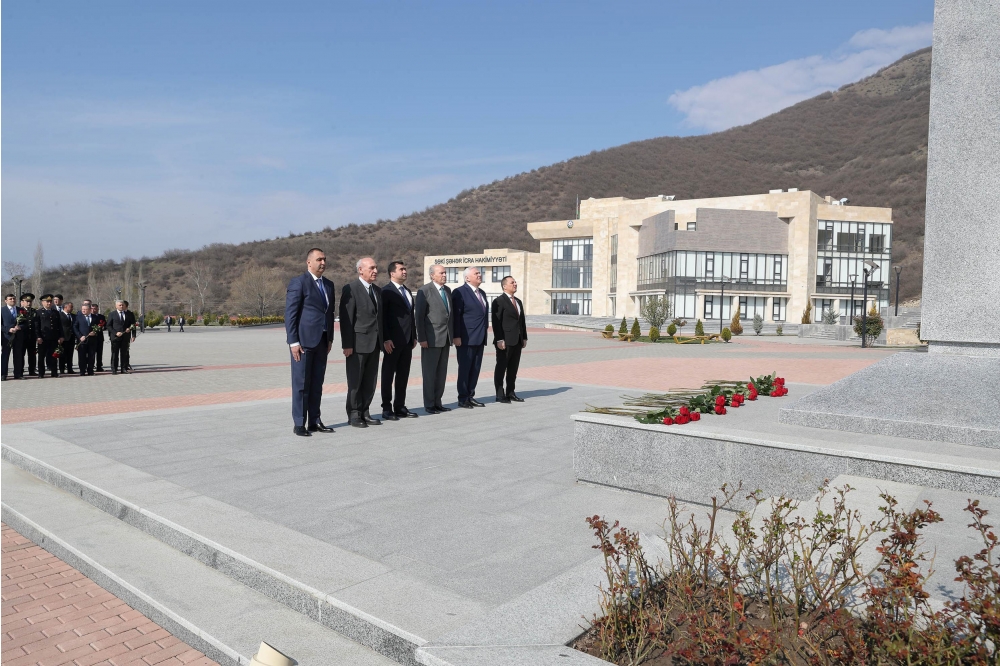 Öncə qonaqlar Şəki şəhərinin mərkəzində Ümummilli Lider Heydər Əliyevin xatirəsinə ucaldılmış abidəni ziyarət etmiş, önünə gül dəstələri qoyublar.