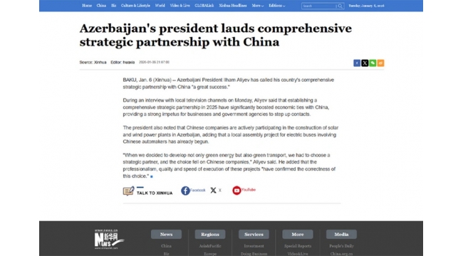 Çin agentliyi Prezident İlham Əliyevin yerli televiziya kanallarına müsahibəsindən yazıb