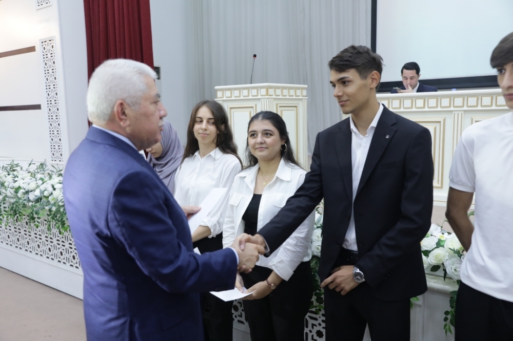 Ölkə rəhbərliyinin təhsil siyasətinin dəstəklənməsi, təhsilin inkişafının stimullaşdırılması, təlim və tədris prosessində nailiyyətləri olanların həvəsləndirilməsi məqsədi ilə Ağalar Vəliyev tərəfindən mərasimdə 57 saylı Xaçmaz şəhər Seçki Dairəsi üzrə cari ildə ali məktəblərə qəbul olunarkən 400-500 aralığında bal toplayan 72 tələbəyə, 500-600 aralığında bal toplayan 27 tələbəyə, 600-650 aralığında bal toplayan 7 tələbəyə, 650-700 aralığında bal toplayan 8 tələbəyə, topladığı baldan asıllı olmayaraq tələbə adı qazanan 2 şəhid övladına, ümumilikdə isə 116 nəfərə müxtəlif məbləğlərdə pul mükafatı təqdim edilib.