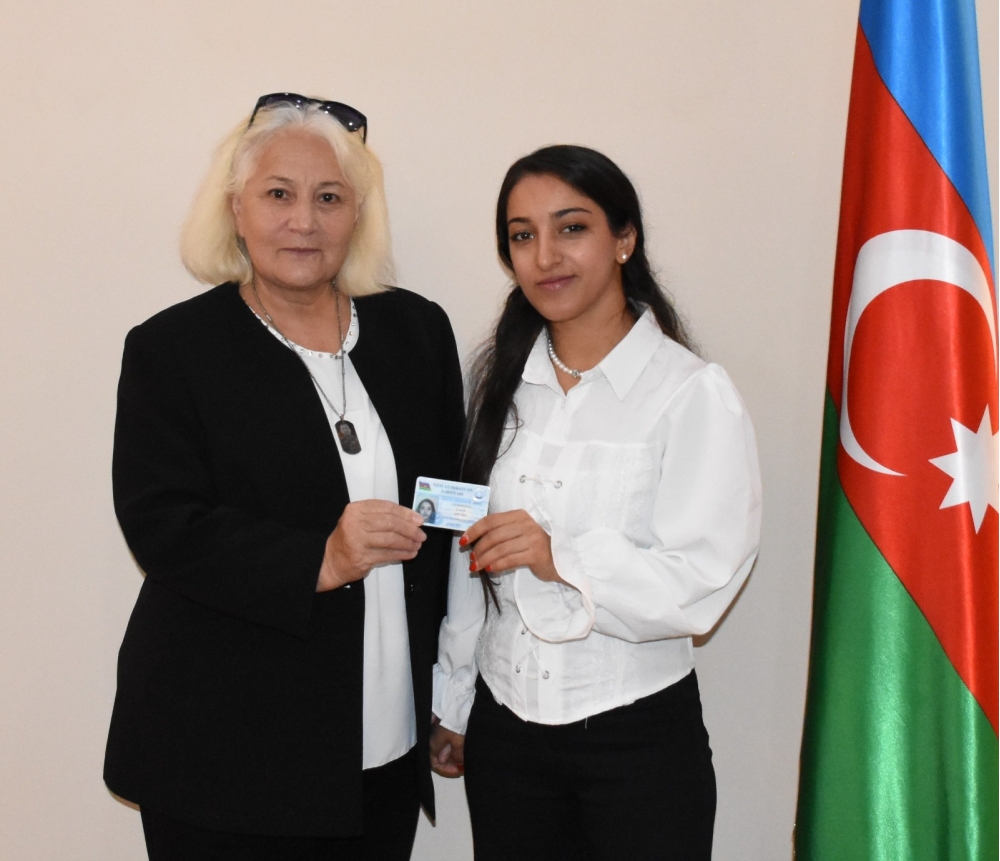 Dəyirmi masanın sonunda bir qrup yeni YAP üzvünə vəsiqələr təqdim edilib və Heydər Əliyevin büstü önündə xatirə şəkli çəkdirilib.
