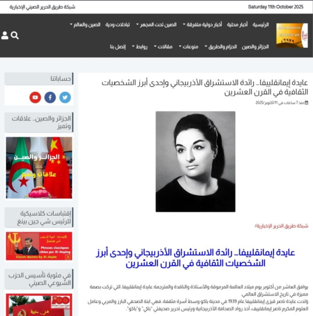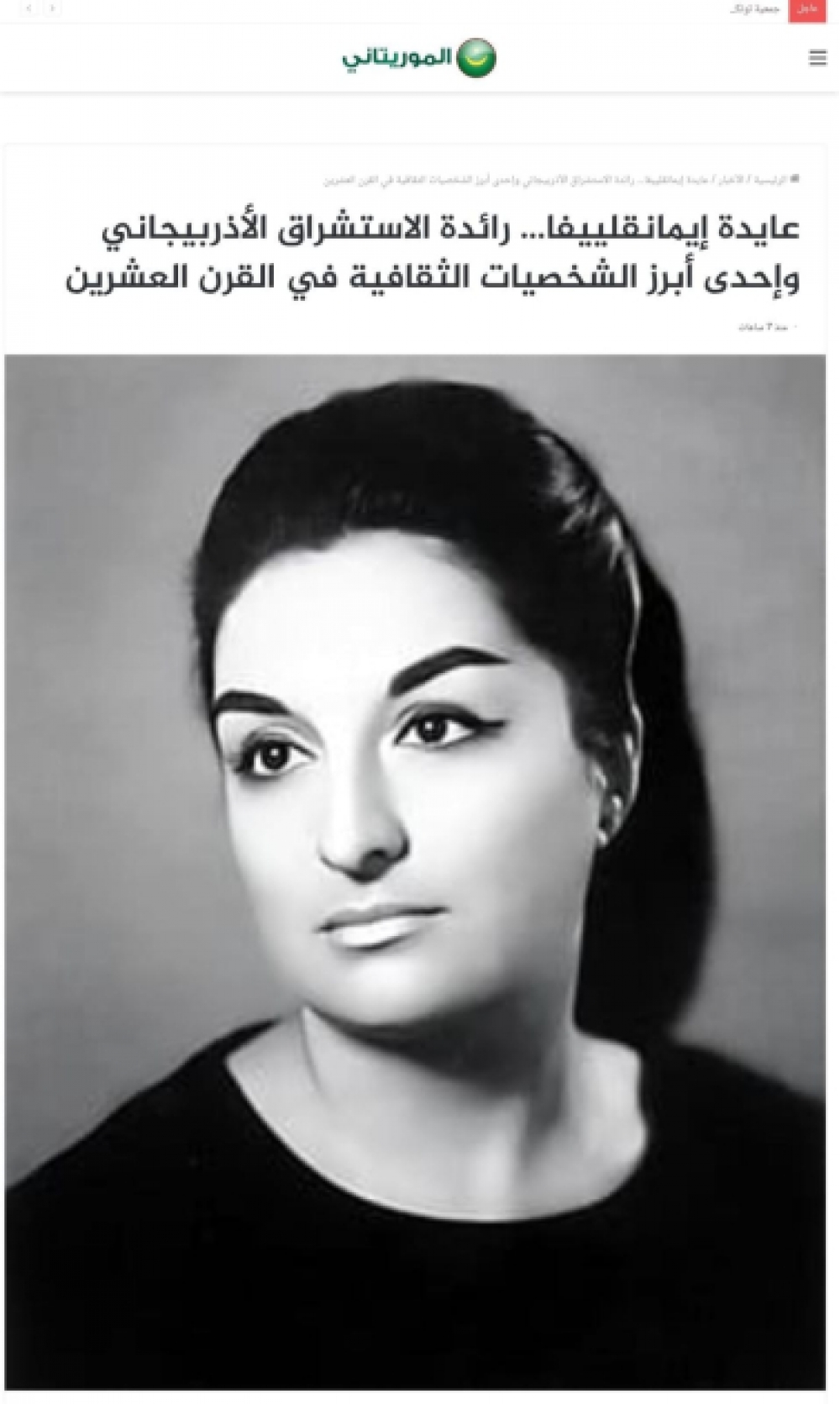 Əlcəzairin “Əl Hərir”, Tunisin “Shams-alyaoum”, Mavritaniyanın “tanidmedia.net” və “elmouritany.info” xəbər portallarında “Aida İmanquliyeva – Azərbaycan şərqşünaslığının qabaqcıl nümayəndəsi və XX əsrin görkəmli mədəniyyət xadimlərindən biridir” sərlövhəli məqalə yayımlanıb.