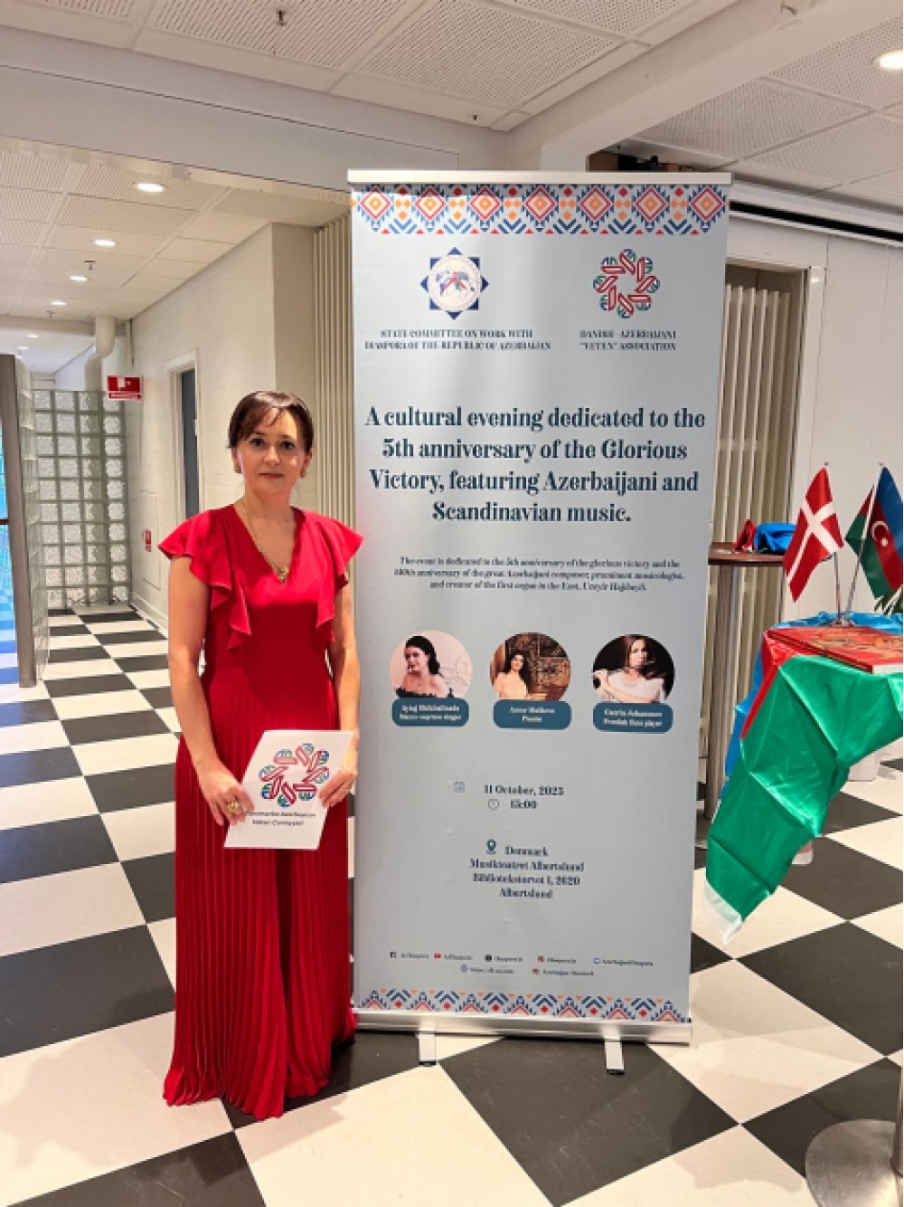 Kopenhagenin “Albertslund” Mədəniyyət Mərkəzində Azərbaycanın İkinci Qarabağ müharibəsində Zəfərinin 5-ci ildönümü və dahi Azərbaycan bəstəkarı Üzeyir Hacıbəylinin 140 illiyinə həsr olunmuş tədbir keçirilib.