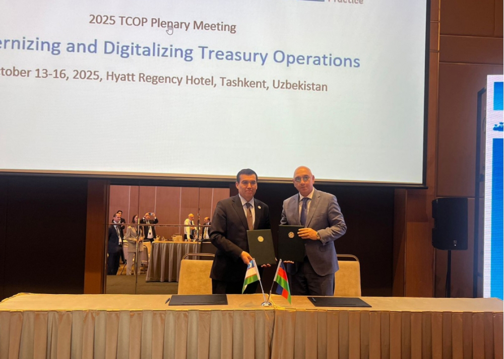 Sonda Özbəkistan Respublikası İqtisadiyyat və Maliyyə Nazirliyinin Xəzinədarlıq Xidməti Komitəsi ilə Azərbaycan Respublikası Maliyyə Nazirliyi yanında Dövlət Xəzinədarlıq Agentliyi arasında qarşılıqlı əməkdaşlıq və təcrübə mübadiləsinə dair anlaşma memorandumu imzalanıb.