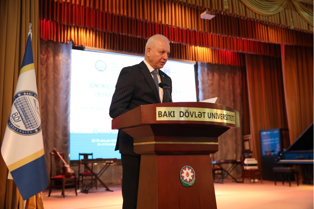 Rektor diqqətə çatdırıb ki, Türk dünyasının inkişafı və həmrəyliyi yalnız iqtisadi əlaqələrin gücləndirilməsi ilə deyil, elm, təhsil, mədəniyyət və ortaq dəyərlər üzərində qurulmuş möhkəm bir mənəvi körpü ilə mümkündür: “Ulu Öndər Heydər Əliyevin uzaqgörən siyasəti və dərin strateji baxışları türk xalqlarının həmrəyliyi, qarşılıqlı hörmət və əməkdaşlıq ruhu üçün əbədi bir ideyanın təməlini qoyub. Bu ideya Türk dünyasının inteqrasiya prosesləri, birgə layihələri və gələcəyə yönəlmiş strateji baxışında öz əksini tapır. Məhz bu ideyaların davamı olaraq, Türk dünyası dövlətlərinin başçılarının uzaqgörən təşəbbüsləri ilə Türk Dövlətləri Təşkilatı çərçivəsində yeni bir mərhələyə – elm, texnologiya, süni intellekt və innovasiya sahəsində ortaq ekosistemin formalaşması mərhələsinə qədəm qoyulub. Bu ekosistem yalnız texnoloji tərəqqini deyil, həm də etik məsuliyyəti, insan mərkəzli yanaşmanı və ortaq dəyərlər üzərində qurulmuş elmi əməkdaşlığı özündə birləşdirir. BDU tərəfindən elm və təhsildə yeni çağırışlara cavab olaraq “Türk dünyasında süni intellekt etikası Mərkəzi”nin yaradılması kimi təşəbbüs irəli sürmək istərdik. Bu təşəbbüs Türk dövlətlərinin müvafiq universitetlərinin elmi potensialının birləşdirilməsinə, süni intellekt sahəsində ortaq elmi-praktik platformanın qurulmasına və gələcəyin etik prinsiplərə əsaslanan texnoloji inkişaf modelinin yaradılmasına yönəldilməlidir. Oktyabrın 31-dək davam edəcək Süni İntellekt Etikası üzrə Türk Dünyasının I Beynəlxalq Konfransı və Payız məktəbində dünyanın 10 ölkəsindən aparıcı universitet və elmi mərkəzlərin nümayəndələri, alimlər, ekspertlər və tələbələr iştirak edirlər. Bu beynəlxalq platforma təkcə süni intellektin texnoloji tərəflərini deyil, onun etik, sosial və hüquqi aspektlərini müzakirə etmək, həmçinin ortaq elmi baxış və standartların formalaşdırılmasına töhfə vermək məqsədi daşıyır. Tədbir çərçivəsində süni intellektin etik prinsipləri, tədris proqramlarına inteqrasiyası, məsuliyyətli texnologiya anlayışı, eləcə də insan yönümlü innovasiya modelləri kimi aktual mövzular ətrafında geniş fikir mübadiləsi aparılacaq”.