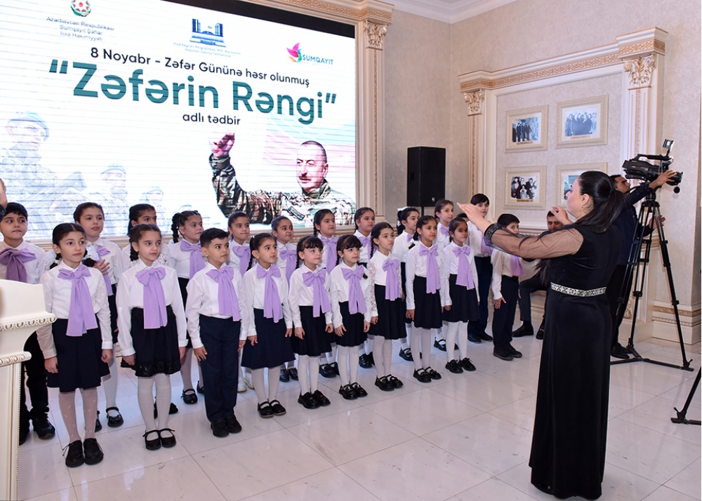 Sumqayıt şəhərində 8 Noyabr – Zəfər Günü ilə əlaqədar təşkil olunan “Zəfərin rəngi” adlı tədbirdə “44 Zəfər Plakatı” rəsm sərgisi açılıb.