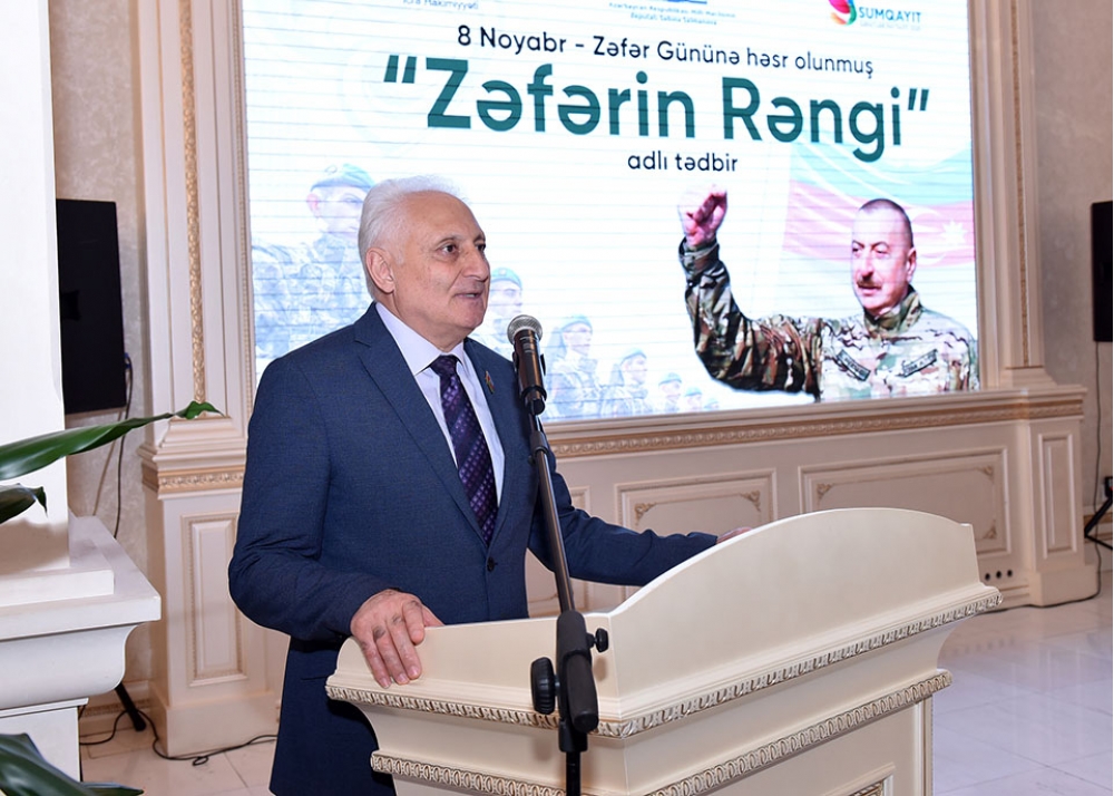 Mərasimdə çıxış edən Sumqayıt şəhər icra hakimiyyətinin başçısı Zakir Fərəcov Zəfər Gününu Azərbaycan xalqının qürur və şərəf səhifəsi kimi dəyərləndirib: “Ali Baş Komandan İlham Əliyevin rəhbərliyi ilə ordumuz düşməni torpaqlarımızdan qovaraq 30 illik həsrətə son qoydu. Bu Qələbə xalqımızın birliyinin, Vətən sevgisinin və əsgərlərimizin qəhrəmanlığının nəticəsidir. Biz şəhidlərimizin qanı ilə yazılmış bu tarixi Qələbəni heç vaxt unutmayacağıq”.