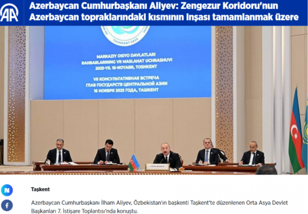 Türkiyə mediası Prezident İlham Əliyevin Mərkəzi Asiya Dövlət Başçılarının Daşkənddə keçirilən 7-ci Məşvərət Görüşündə iştirakını geniş işıqlandırır.