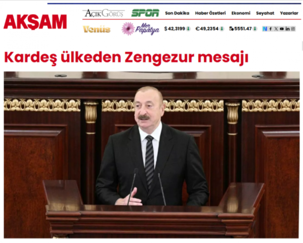 “İki sahil” xəbər verir ki, qardaş ölkənin media orqanları bazar günü yayımlanan reportajlarında Azərbaycan liderinin görüş iştirakçılarına müraciətinə, o cümlədən Zəngəzur dəhlizi layihəsi (Beynəlxalq Sülh və Rifah naminə Tramp Marşrutu, TRIPP) ilə bağlı fikirlərinə diqqət yetiriblər.