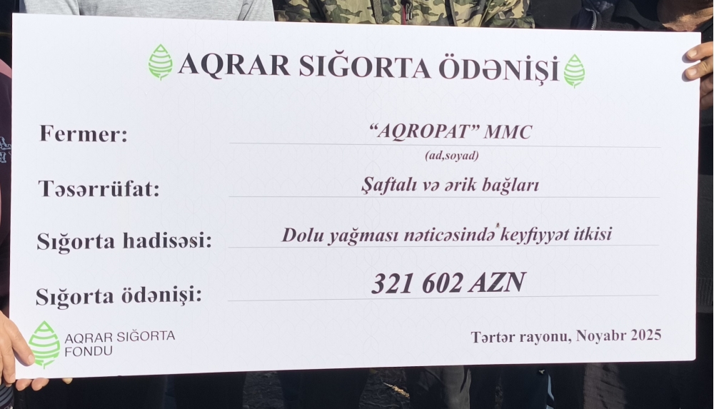 Qeyd edək ki, bu - indiyədək Aqrar Sığorta Fondu tərəfindən meyvə bağlarına ödənilən ən böyük sığorta ödənişi olmaqla yanaşı, ümumiyyətlə doludan keyfiyyət itkisi üzrə ilk ödənişdir.