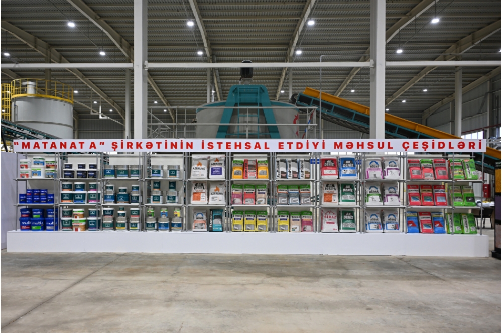 Prezident İlham Əliyevə əvvəlcə əsası 2000-ci ildə qoyulan “Matanat-A” şirkəti barədə məlumat verildi. İnşaat materiallarının istehsalı sektorunda 25 ildir fəaliyyət göstərən şirkətin tərkibinə “Matanat A” Quru İnşaat Qarışıqları, AĞDAĞ gipskarton və gips əsaslı məhsulların istehsalı, AZERLİME Əhəng, Avadanlıq və dəzgahların istehsalı və ELBERG maşınqayırma zavodları daxildir. Şirkətin müəssisələrində ümumilikdə 1000-ə yaxın iş yeri yaradılıb.