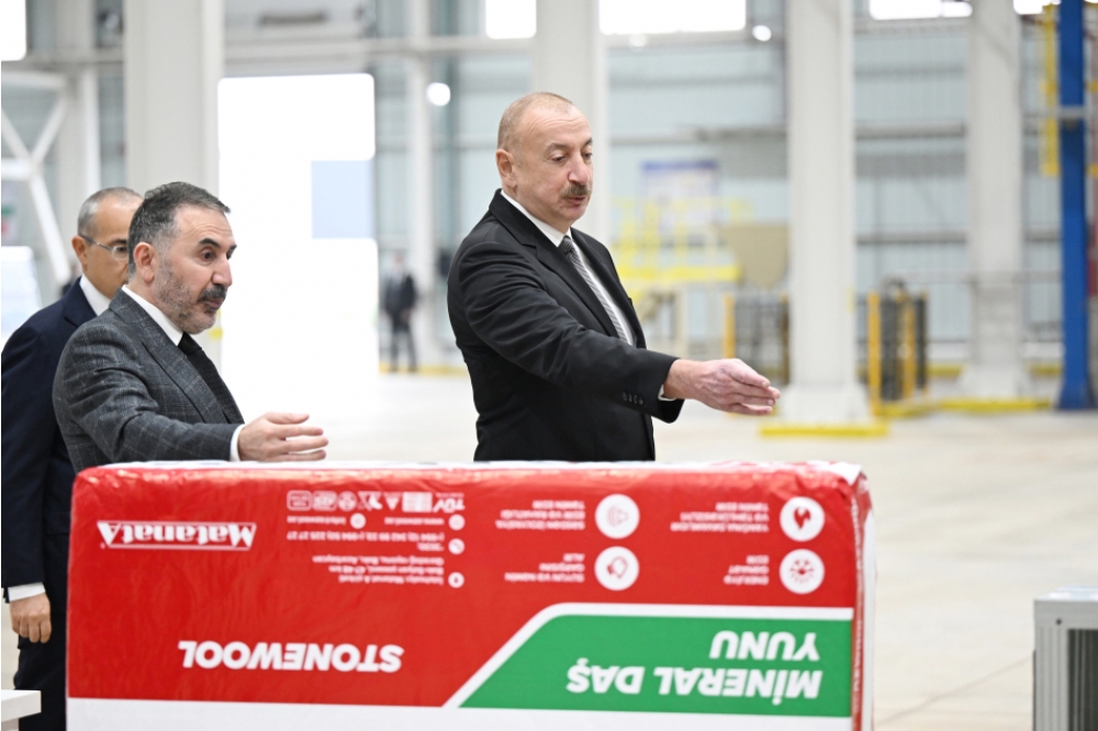 Azərbaycan Respublikasının Prezidenti İlham Əliyev Bakının Qaradağ rayonunda “Matanat-A” şirkətinin “AZWOOL” mineral daş yunu zavodunun açılışında iştirak edib.