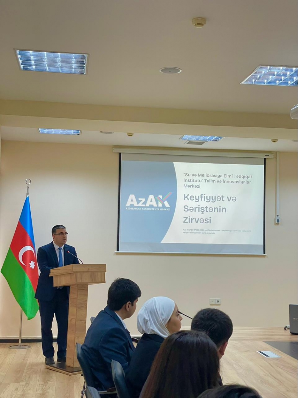 Azərbaycan Akkreditasiya Mərkəzi (AzAK) Su və Meliorasiya Elmi Tədqiqat İnstitutuna AZS ISO/IEC 17024:2024 “Uyğunluğun qiymətləndirilməsi. Şəxslərin sertifikatlaşdırılmasını həyata keçirən orqanlara dair ümumi tələblər” standartı üzrə akkreditasiya attestatını təqdim etmişdir.