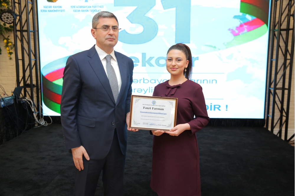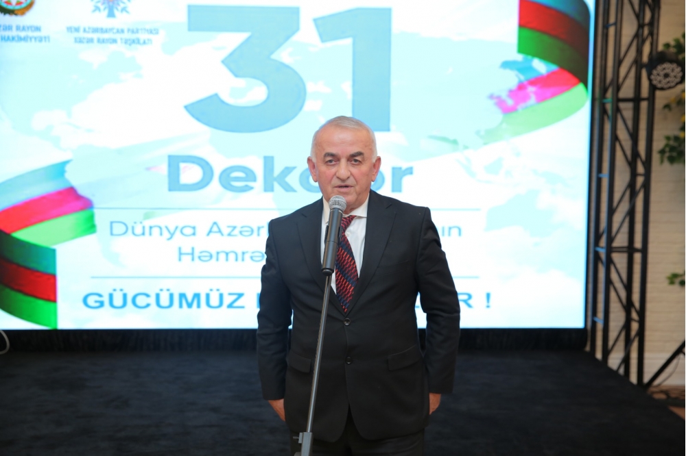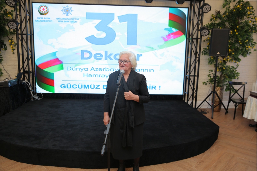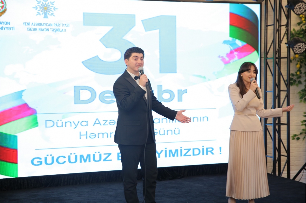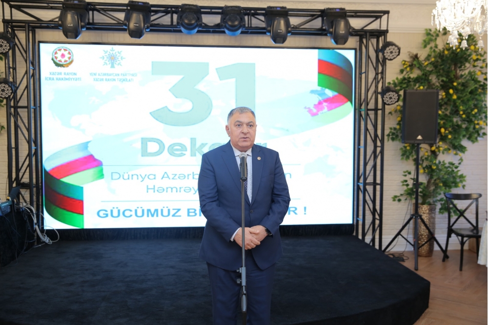 Dekabrın 29-da Xəzər Rayon İcra Hakimiyyəti və Yeni Azərbaycan Partiyası Xəzər rayon təşkilatının birgə təşkilatçılığı ilə “31 Dekabr – Dünya Azərbaycanlılarının Həmrəyliyi Günü” və qarşıdan gələn Yeni il münasibətilə bayram tədbiri təşkil olunub.