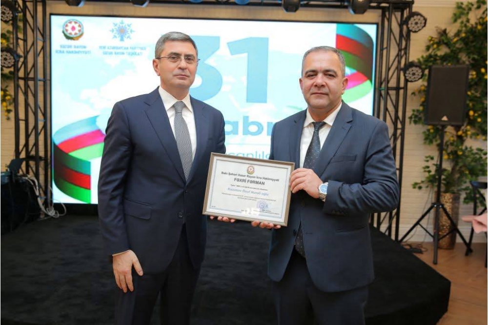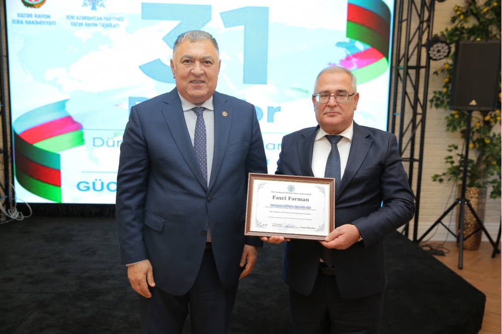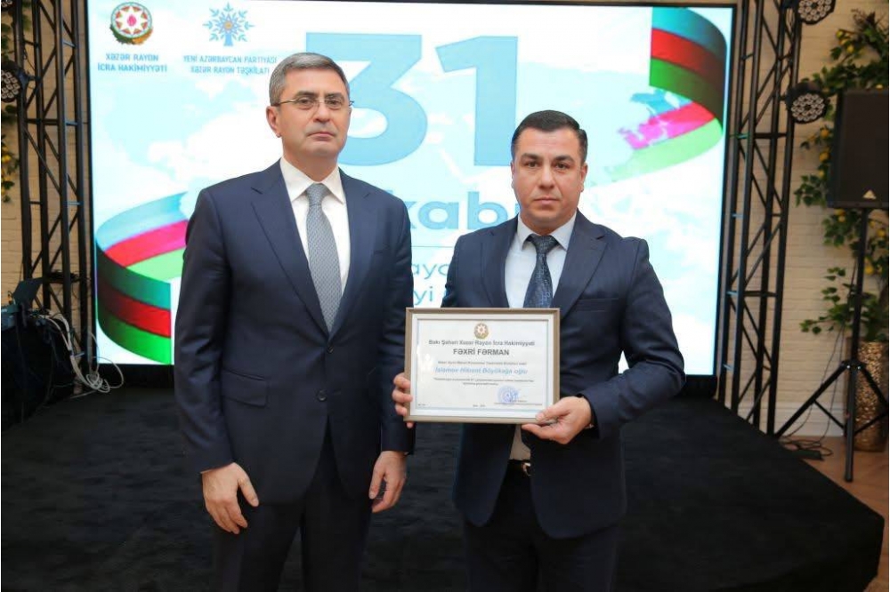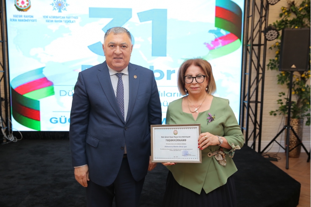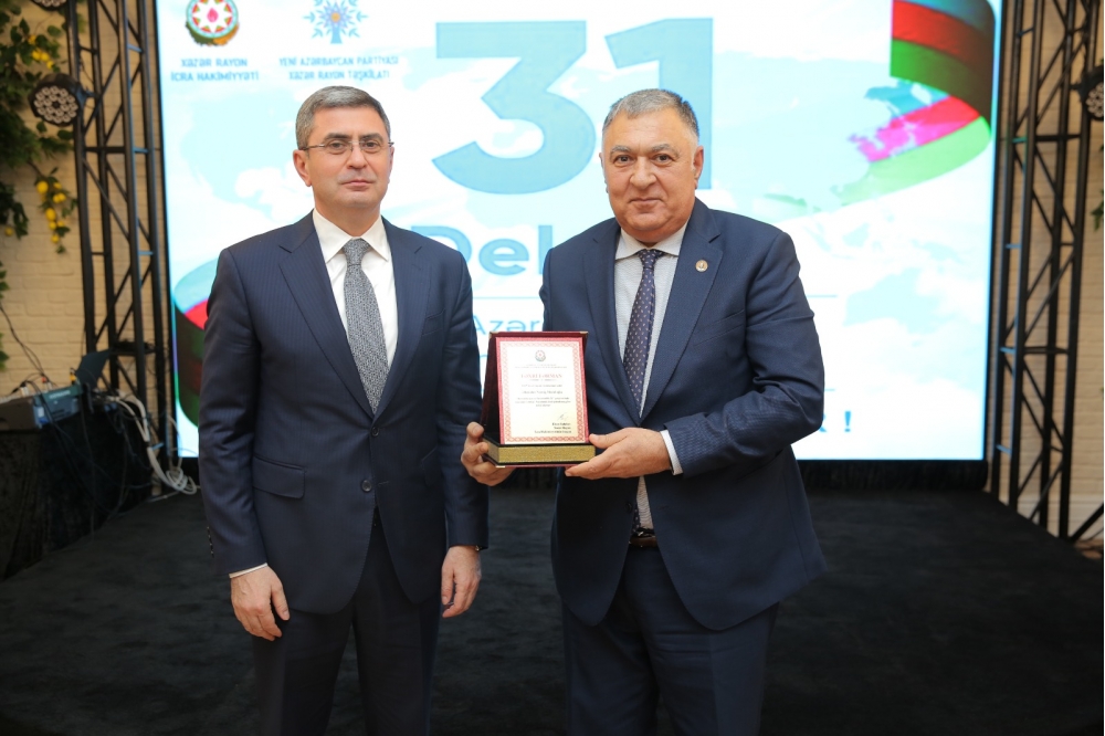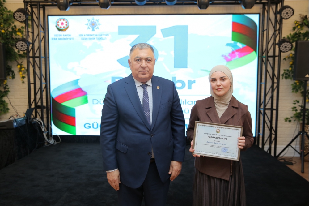 Dekabrın 29-da Xəzər Rayon İcra Hakimiyyəti və Yeni Azərbaycan Partiyası Xəzər rayon təşkilatının birgə təşkilatçılığı ilə “31 Dekabr – Dünya Azərbaycanlılarının Həmrəyliyi Günü” və qarşıdan gələn Yeni il münasibətilə bayram tədbiri təşkil olunub.