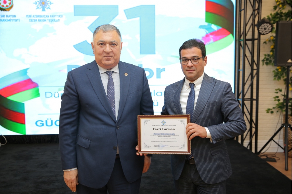Daha sonra Yeni Azərbaycan Partiyasının inkişafında və rayonun ictimai-siyasi həyatında fəal iştirak edən şəxslər Fəxri Fərman və hədiyyələrlə təltif edilib.