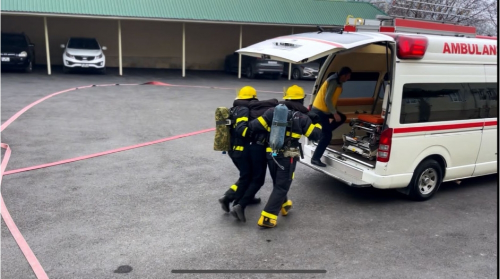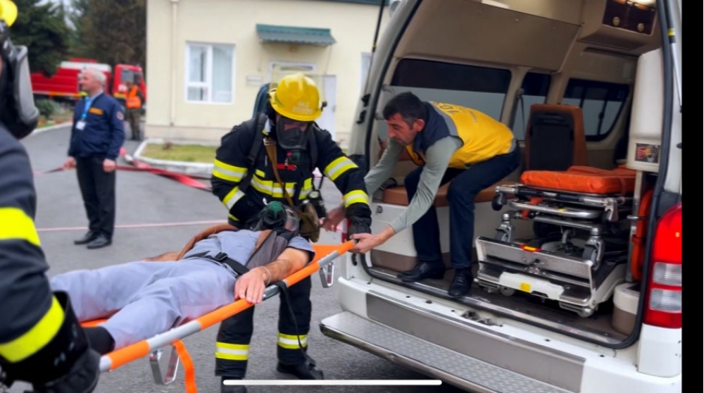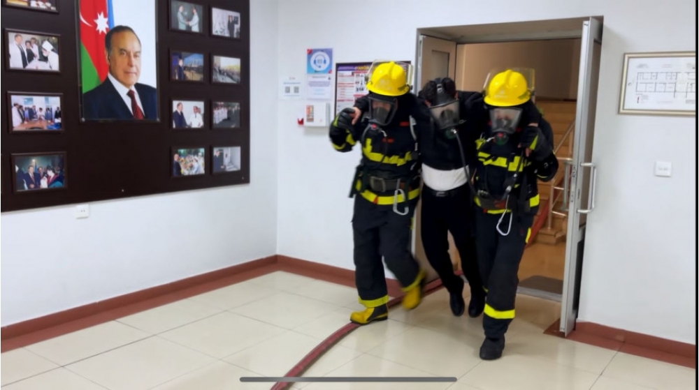 Belə ki, şərti yanğın zamanı “həyəcan” siqnalı verildikdən sonra FHN-in yanğın-xilasetmə bölmələri operativ qaydada hadisə yerinə çataraq xəstəxananın müvafiq personalı ilə əlaqəli şəkildə obyektin təxliyə planına uyğun insanların təhlükəsiz yerə təxliyəsini həyata keçirib, paralel olaraq “yanğınla mübarizə” tədbirləri yerinə yetirilib, habelə şərti xəsarət almış şəxslərə “ilkin yardım göstərilib”.