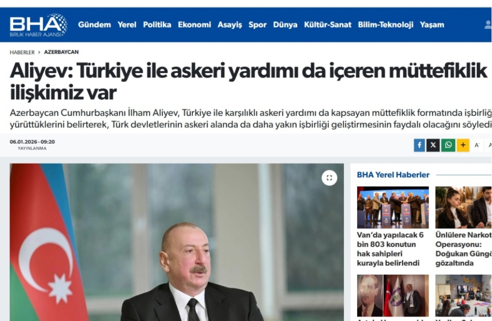Türkiyənin aparıcı media orqanları da Azərbaycan Prezidentinin yerli televiziya kanallarına verdiyi müsahibəni geniş şəkildə işıqlandırıb. Qardaş ölkənin televiziya kanalları, xəbər agentlikləri və qəzetləri Azərbaycan liderinin Türk Dövlətləri Təşkilatı çərçivəsində müdafiə əməkdaşlığının vacibliyi ilə bağlı fikirlərinə, eləcə də Prezident İlham Əliyevin Türkiyə ilə müttəfiqlik əlaqələrinin dərinləşdirilməsi ilə bağlı açıqlamalarına diqqət yetiriblər.