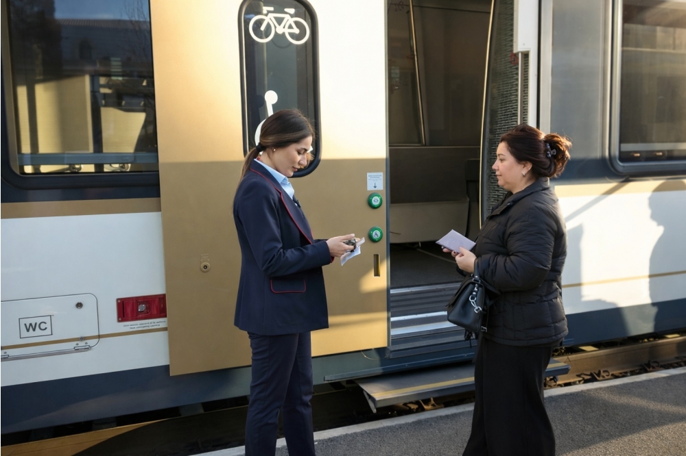 Sərnişinlərə oturacaq tipli müasir elektrik qatarları ilə xidmət göstərilir. Qatarlarda standart, standart+, biznes və birinci siniflər üzrə səyahət imkanları təklif olunur. Biletlərin minimal qiyməti Gəncə–Qəbələ istiqamətində 4.30 AZN, Ləki–Qəbələ istiqamətində isə 1.70 AZN təşkil edir.