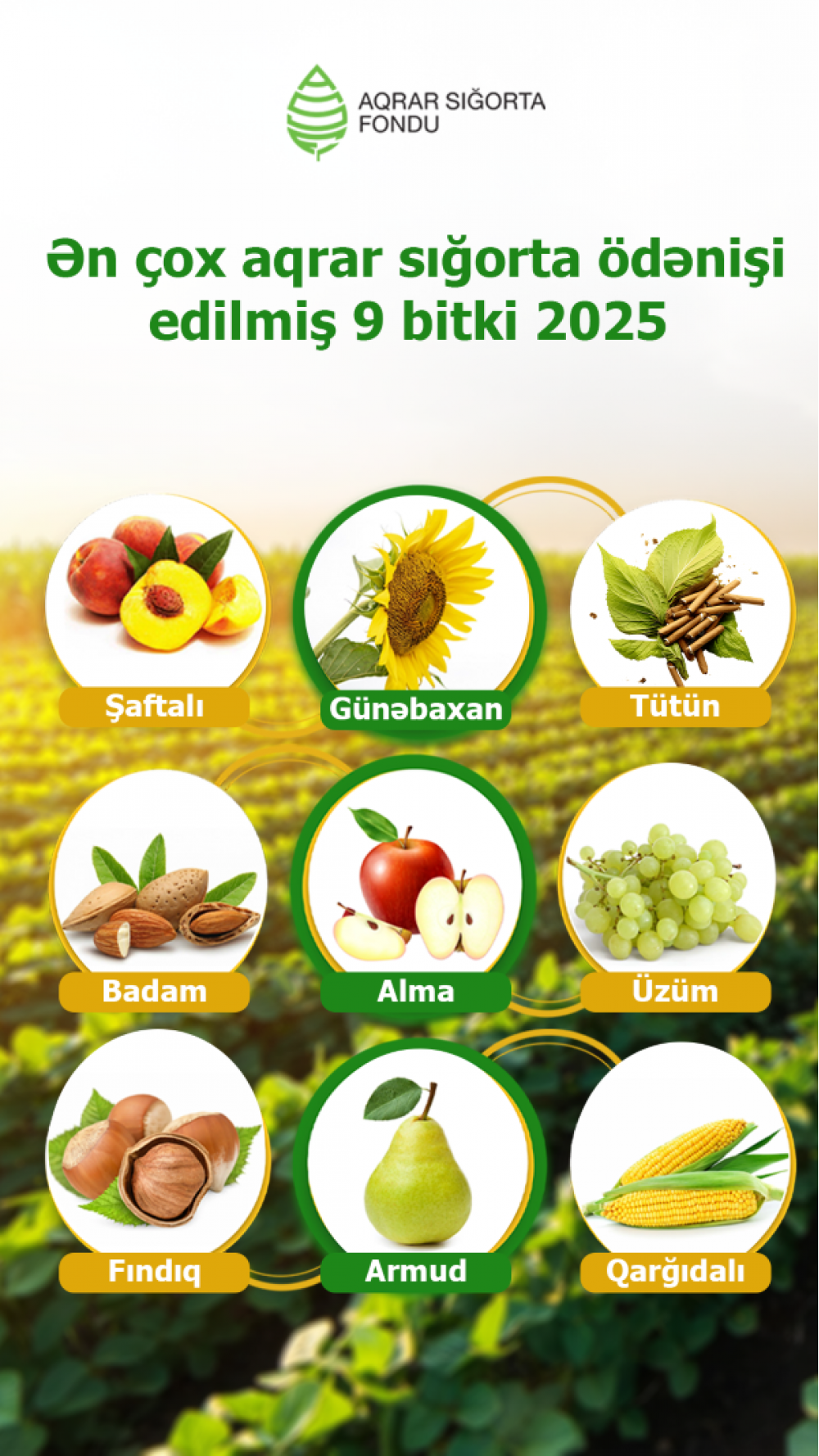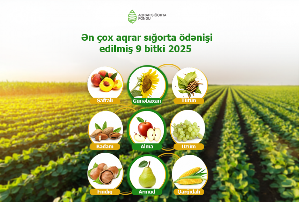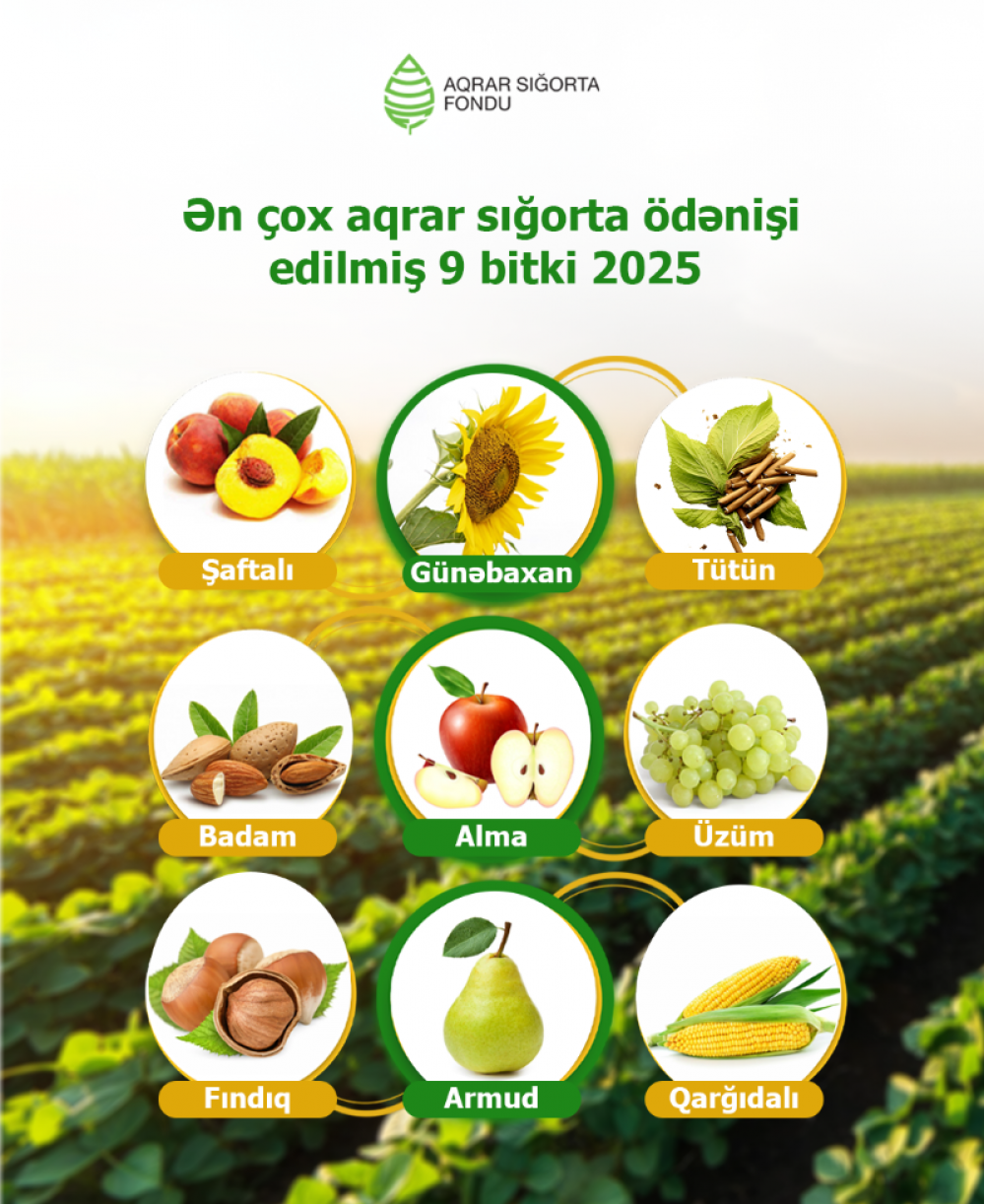 2025-ci ildə Aqrar Sığorta Fondu tərəfindən sığortalanan 41 bitki növündən 26-sı üzrə sığorta ödənişi həyata keçirilib.