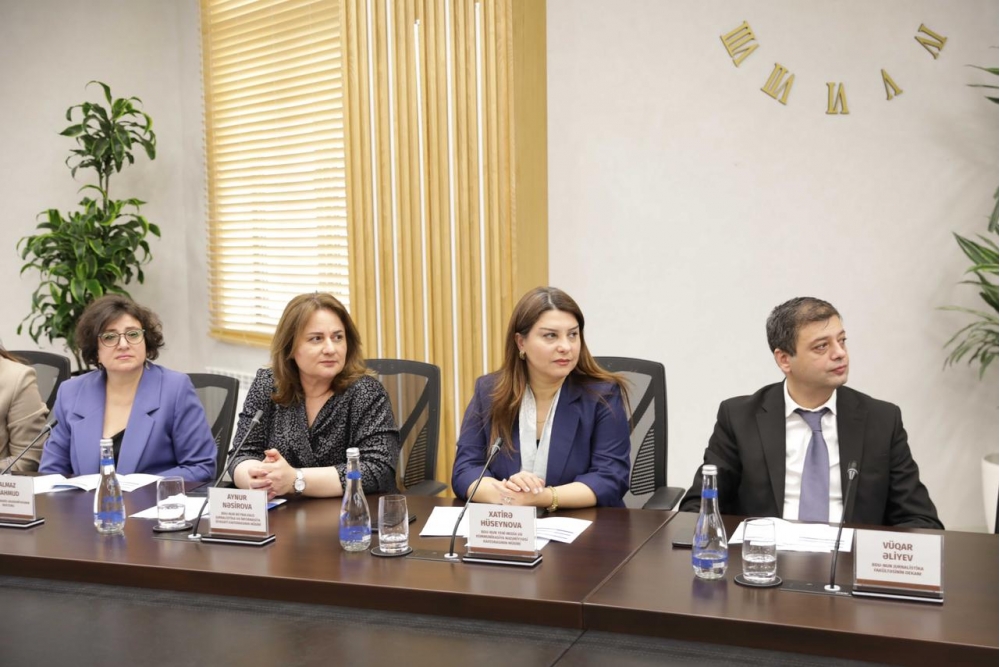 BDU-nun Milli mətbuat tarixi kafedrasının müdiri Cahangir Məmmədov “Televiziya nitqində özünü göstərən bəzi problemlər haqqında”, Multimedia və elektron kommunikasiya kafedrasının müdiri Qulu Məhərrəmli “Teleradio verilişlərində xarakterik dil nöqsanları və onların aradan qaldırılması yolları”, Yeni media və kommunikasiya nəzəriyyəsi kafedrasının müdiri Xatirə Hüseynova “Gənclərdə nümunəvi nitqin formalaşmasında audiovizual media məzmununun rolu” mövzularında məruzələr ediblər. Məruzələrdə audiovizual mediada müşahidə olunan tələffüz, məna və üslub səhvləri, leksik, qrammatik nöqsanlar sadalanıb. Televiziya və radioların redaktor heyətinin peşəkarlığının artırılmasına, aparıcılar və məzmun yaradıcılıarı üçün davamlı təlimlərin təşkilinə böyük ehtiyac duyulduğu bildirilib. Çıxışlarda televiziya və radiolarda daxili monitorinq qrupunun yaradılması da təklif olunub.
