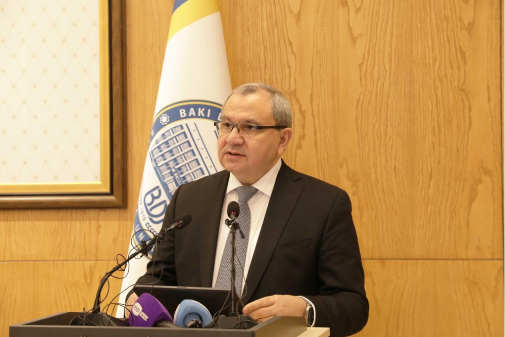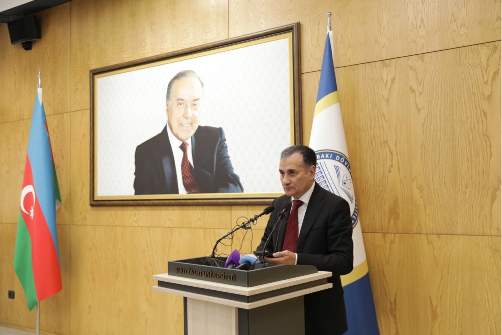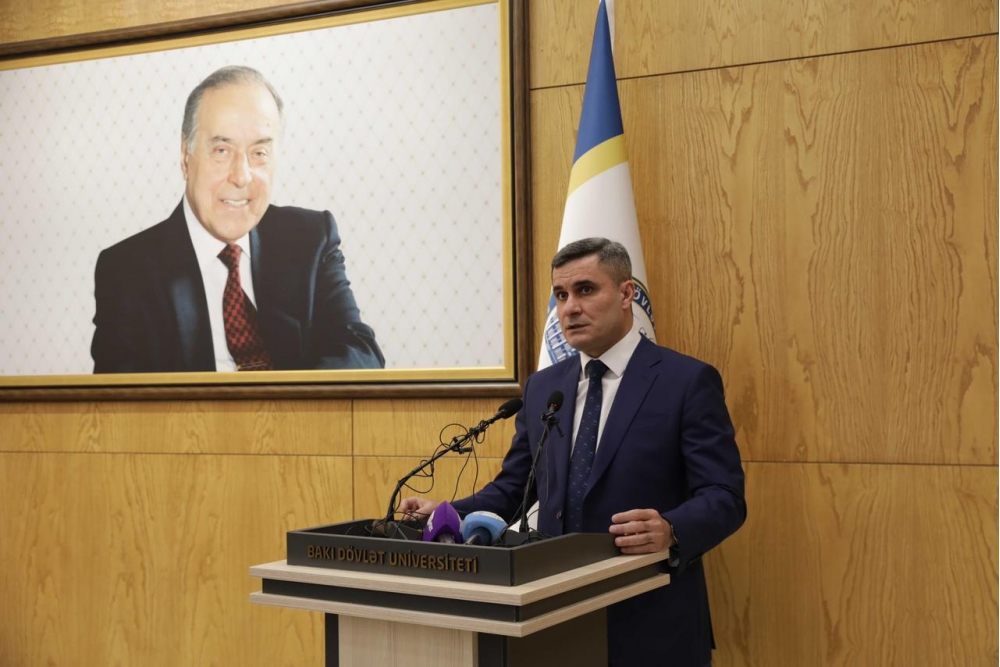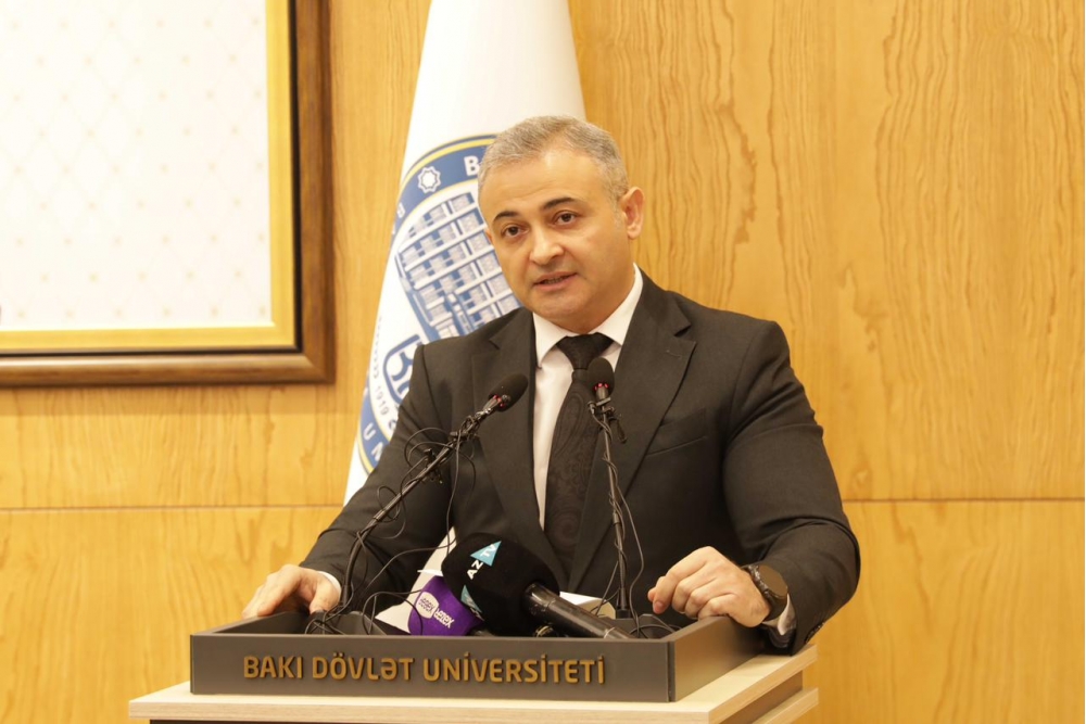 Rektor diqqətə çatdırıb ki, qloballaşma və sürətli elmi-texnoloji inkişaf şəraitində Azərbaycan dilinin zənginləşdirilməsi, tətbiq imkanlarının genişləndirilməsi və elmi əsaslarla qorunması xüsusilə əhəmiyyətlidir: “Azərbaycan dilinin saflığının qorunmasına daim həssaslıqla yanaşan Prezident İlham Əliyev həm AMEA-nın 80 illik yubileyinə həsr olunmuş mərasimdə çıxışında, həm də Azərbaycan televiziyalarına verdiyi müsahibədə bu mövzunun əhəmiyyətinə bir daha toxunaraq bizim hər birimizin məsuliyyətini qeyd etdi. Azərbaycan dilinin saflığının qorunması yalnız dövlətin deyil, bütövlükdə cəmiyyətin ümumi məsuliyyətidir. Müasir informasiya cəmiyyətində kütləvi informasiya vasitələri, xüsusilə audiovizual media Azərbaycan dilinin işləkliyinin genişləndirilməsində, yayılmasında və ictimai şüurda möhkəmlənməsində mühüm rol oynayır. Televiziya, radio və rəqəmsal platformalar cəmiyyətin geniş təbəqələrinə təsir göstərməklə yanaşı, dilin norma və qaydalarının gündəlik nitqə ötürülməsində əsas vasitələrdən birinə çevrilib. Bu baxımdan audiovizual mediada Azərbaycan dilinin ədəbi normalara uyğun, düzgün və səlis istifadəsi təkcə peşəkar məsuliyyət deyil, eyni zamanda ictimai və mədəni öhdəlikdir. Audiovizual media dil siyasətinin həyata keçirilməsində mühüm tərəfdaş kimi çıxış etməli, dilin normativliyinin qorunmasına və dil mədəniyyətinin yüksəldilməsinə töhfə verməlidir”.